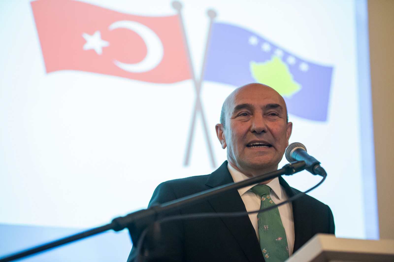 İzmir Büyükşehir Belediye Başkanı Tunç Soyer, Kosova’nın bağımsızlığının 15’inci yıl dönümü resepsiyonunda konuştu. İzmir’in dünyadaki en büyük Balkan şehirlerinden birisi olduğunu söyleyen Başkan Soyer, “Kosova’daki kardeşlerimizin her zaman başımızın üstünde yeri var. Her daim bu kardeşliği yaşatmaya kararlıyız” dedi.