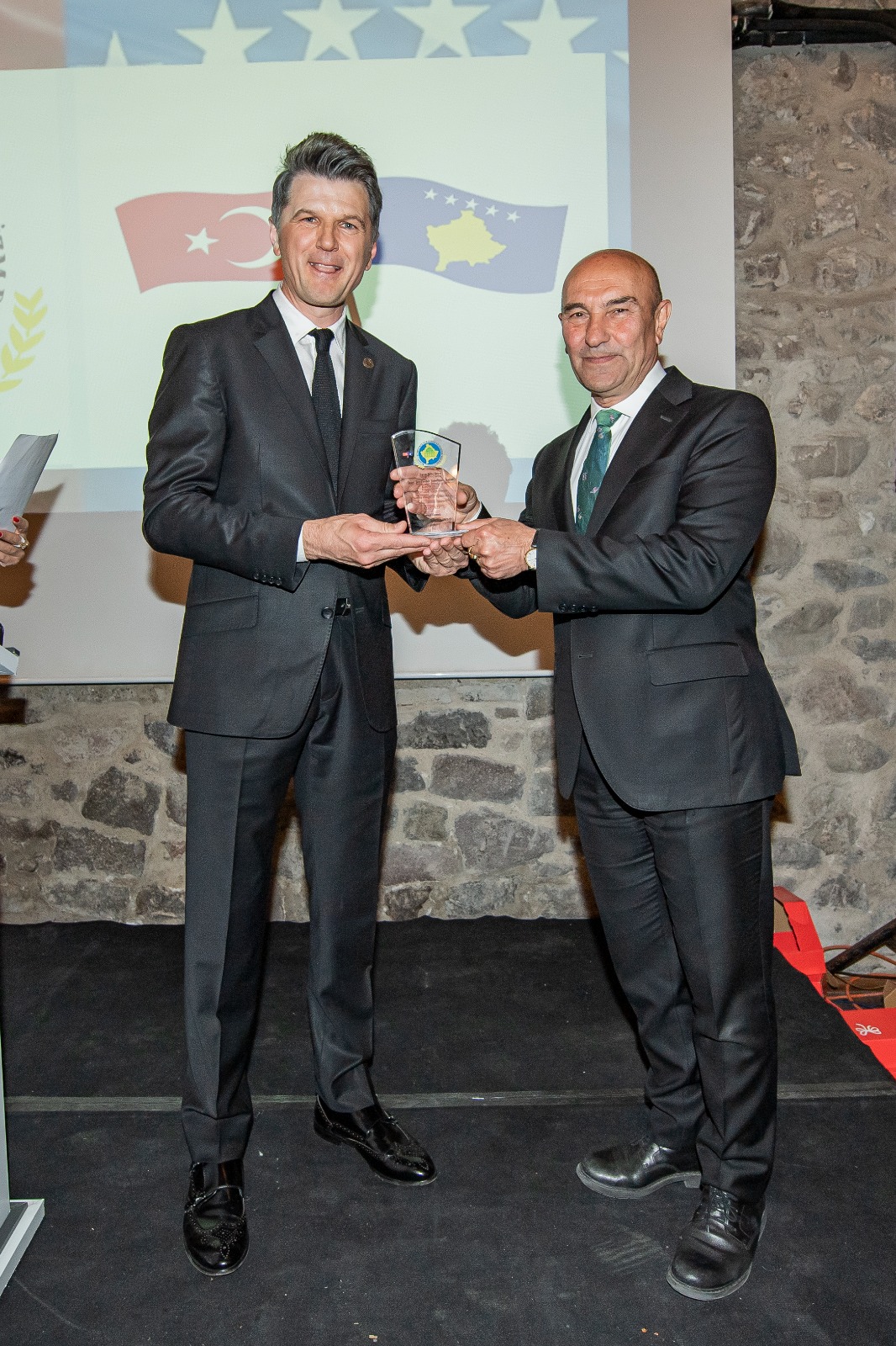 Resepsiyonda konuşan Başkan Tunç Soyer, “Balkanlar belki de dünyanın en büyük acılarının yaşandığı coğrafyadır. En büyük göçlerin yaşandığı, dünyanın en bereketli toprakları olduğu için en fazla bedel ödemiş insanlarının olduğu coğrafyadır. Ne yazık ki bu acılarla yoğrulan insanlar, büyük göçlerle dünyanın dört bir yanına dağılmak zorunda kaldılar. Kosova 15 yıllık bir devlet olsa da en az 500 yıl kardeş olduğumuz, bir arada yaşadığımız bir toplum. Biz İzmir’de belki de dünyanın en büyük Balkan şehirlerinden birisi olarak Kosovalı kardeşlerimize ev sahipliği yapmaktan iftihar ediyoruz. Biliyoruz ki her beden için ekmek, su ne kadar hayatiyse, toplumlar için de barış, kardeşlik o kadar önemli. Bizim kardeşliğimiz ilelebet devam edecek bir kardeşlik. Kosovalı kardeşlerim bilsinler ki, İzmir’de onlar için canla başla çalışan belediye başkanları var. Kosova’daki kardeşlerimizin de her zaman başımızın üstünde yeri var. Her zaman yanlarında olmak istediğimiz akrabalarımız, kardeşlerimizdir. Her daim bu kardeşliği yaşatmaya kararlıyız” dedi.