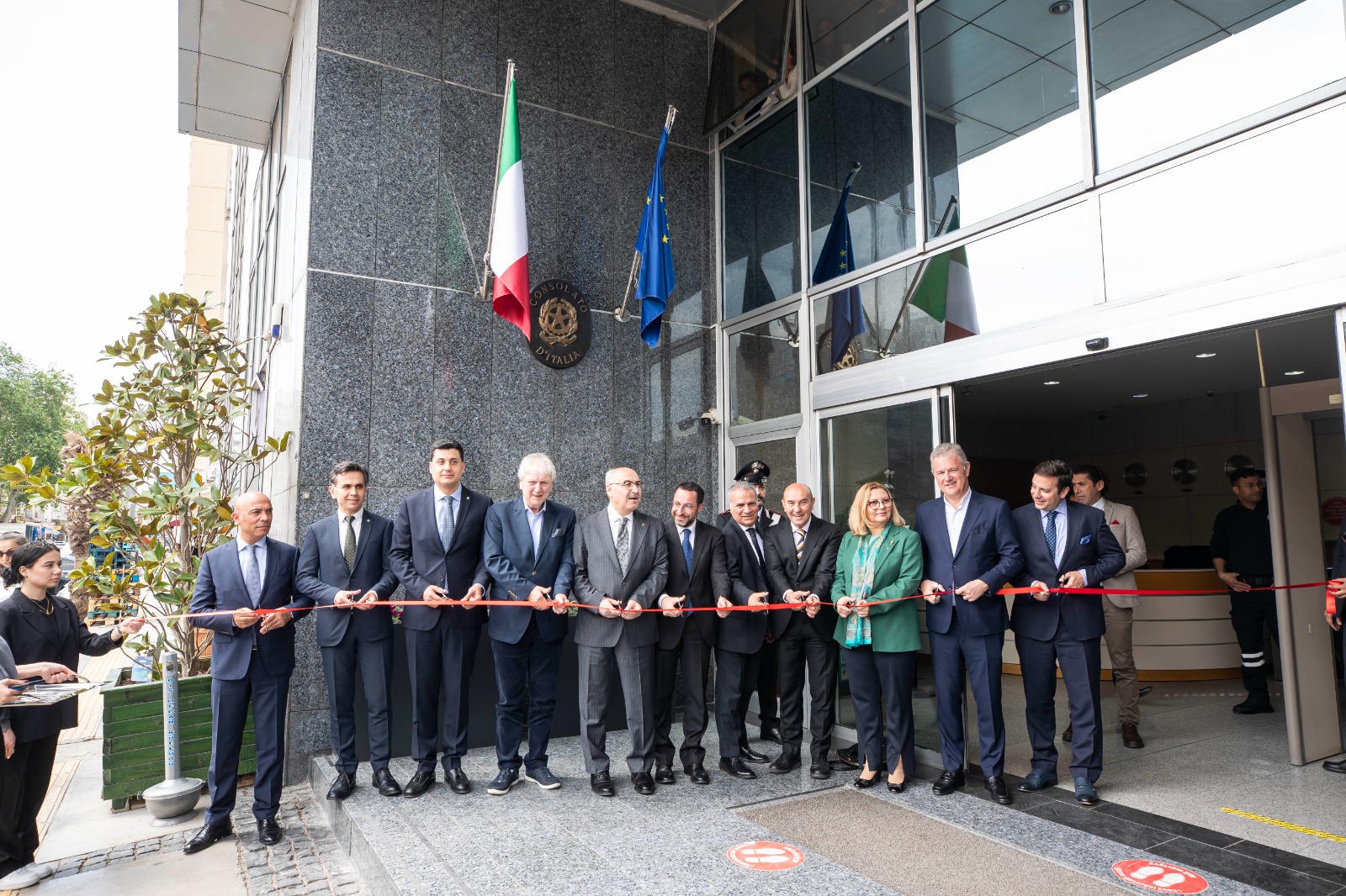 İtalya’nın İzmir Konsolosluk Binası törenle açıldı. İzmir Büyükşehir Belediye Başkanı Tunç Soyer’in de katıldığı açılışa İzmir Valisi Yavuz Selim Köşger, İzmir Ticaret Odası Yönetim Kurulu Başkanı Mahmut Özgener, Ege Bölgesi Sanayi Odası Yönetim Kurulu Başkanı Ender Yorgancılar, Ege İhracatçı Birlikleri Koordinatör Başkanı Jak Eskinazi, İzmir İl Emniyet Müdürü Mehmet Şahne, İtalya’nın Türkiye Büyükelçisi Giorgio Marrapodi, İtalya İzmir Konsolosu Valerio Giorgio, İtalya Dışişleri ve Uluslararası İlişkiler Bakanlığı Yurtdışındaki İtalyan Yurttaşları ve Göç Politikaları Genel Müdürü Luigi Maria Vignali, kaymakamlar, konsoloslar, sivil toplum örgütlerinin başkanları katıldı.