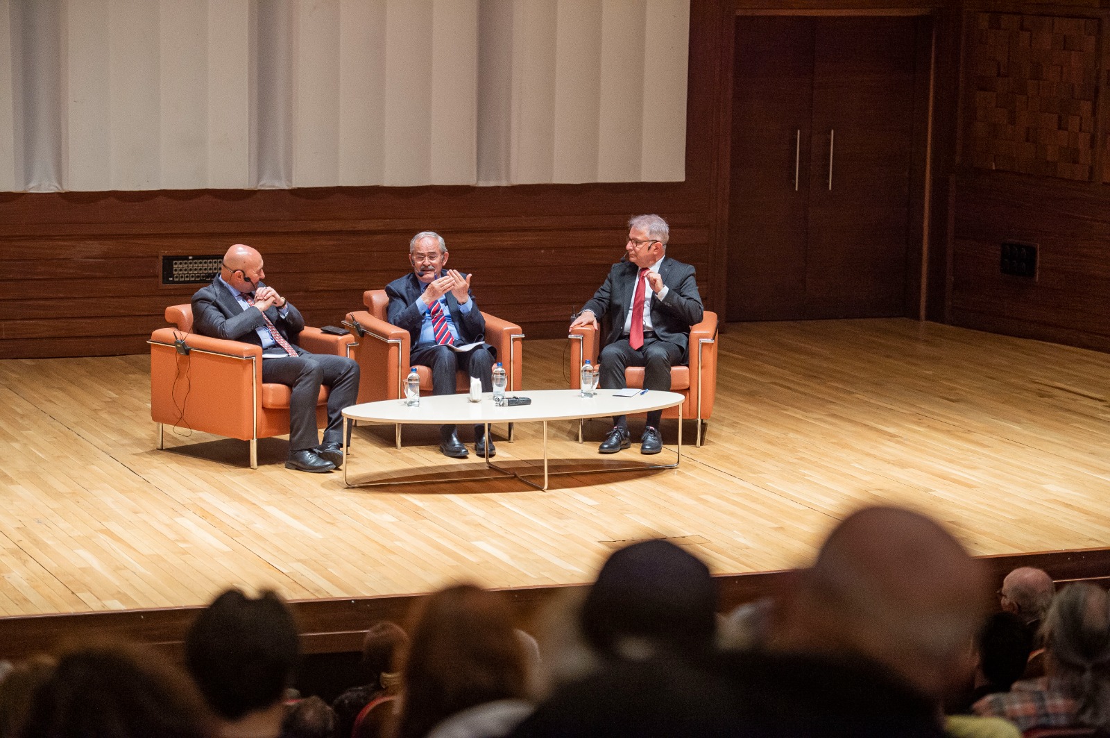 İzmir Büyükşehir Belediyesi’nin ev sahipliğinde düzenlenen “Cumhuriyetin İkinci Yüzyılına Girerken Kültür ve Sanatın Geleceği” sempozyumunun ilk gün etkinlikleri kapsamındaki “Yerel Yönetimler ve Sanat” konulu oturuma İzmir Büyükşehir Belediye Başkanı Tunç Soyer ile Eskişehir Büyükşehir Belediye Başkanı Yılmaz Büyükerşen konuşmacı olarak katıldı. Oturum yazar Yekta Kopan’ın moderatörlüğünde siyasetçi Ali Dinçer anısına düzenlendi.