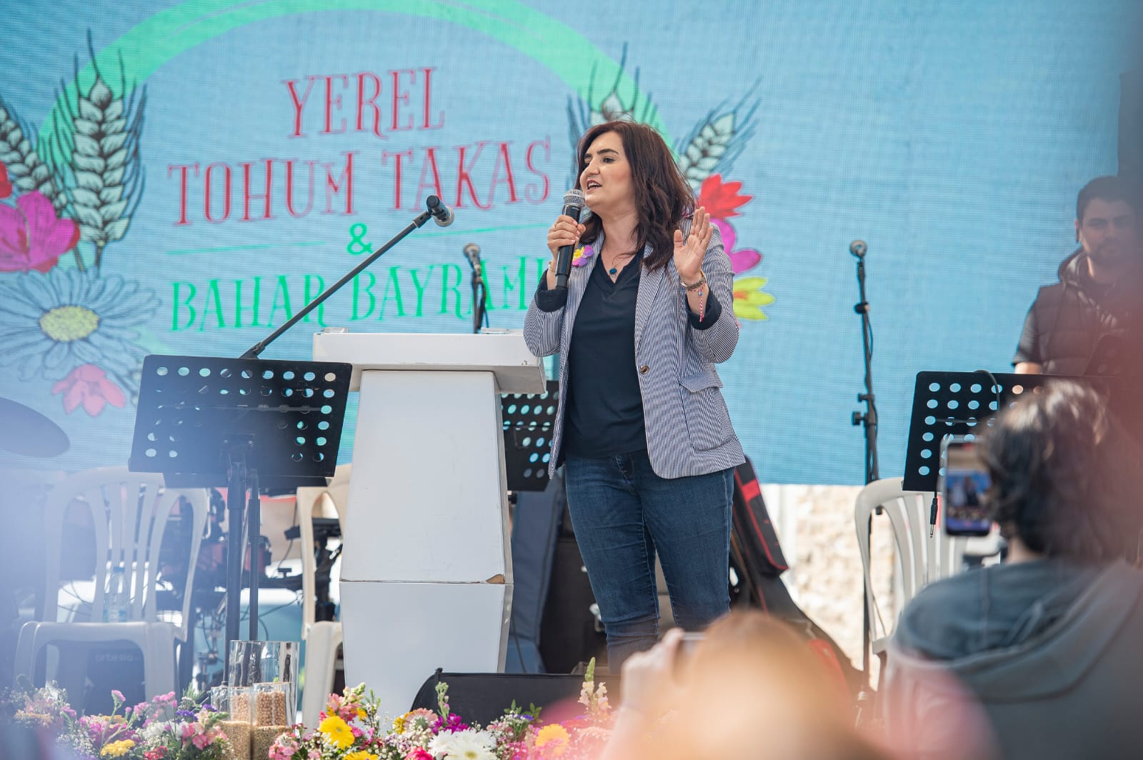 CHP İzmir Milletvekili Sevda Erdan Kılıç da, “Tohum demek hem geçmiş hem gelecek demek. Atalardan kalan en büyük miras. Belediyelerimiz buna sahip çıkıyor. Birileri saman ithal ederken bizim yerel yönetimlerimiz her zaman üreticinin yanında ve üreticinin hakkını kendisine teslim ediyor. Ama yeterli değil. İzmir’de biz şanslıyız ama Anadolu o kadar şanslı değil” dedi.