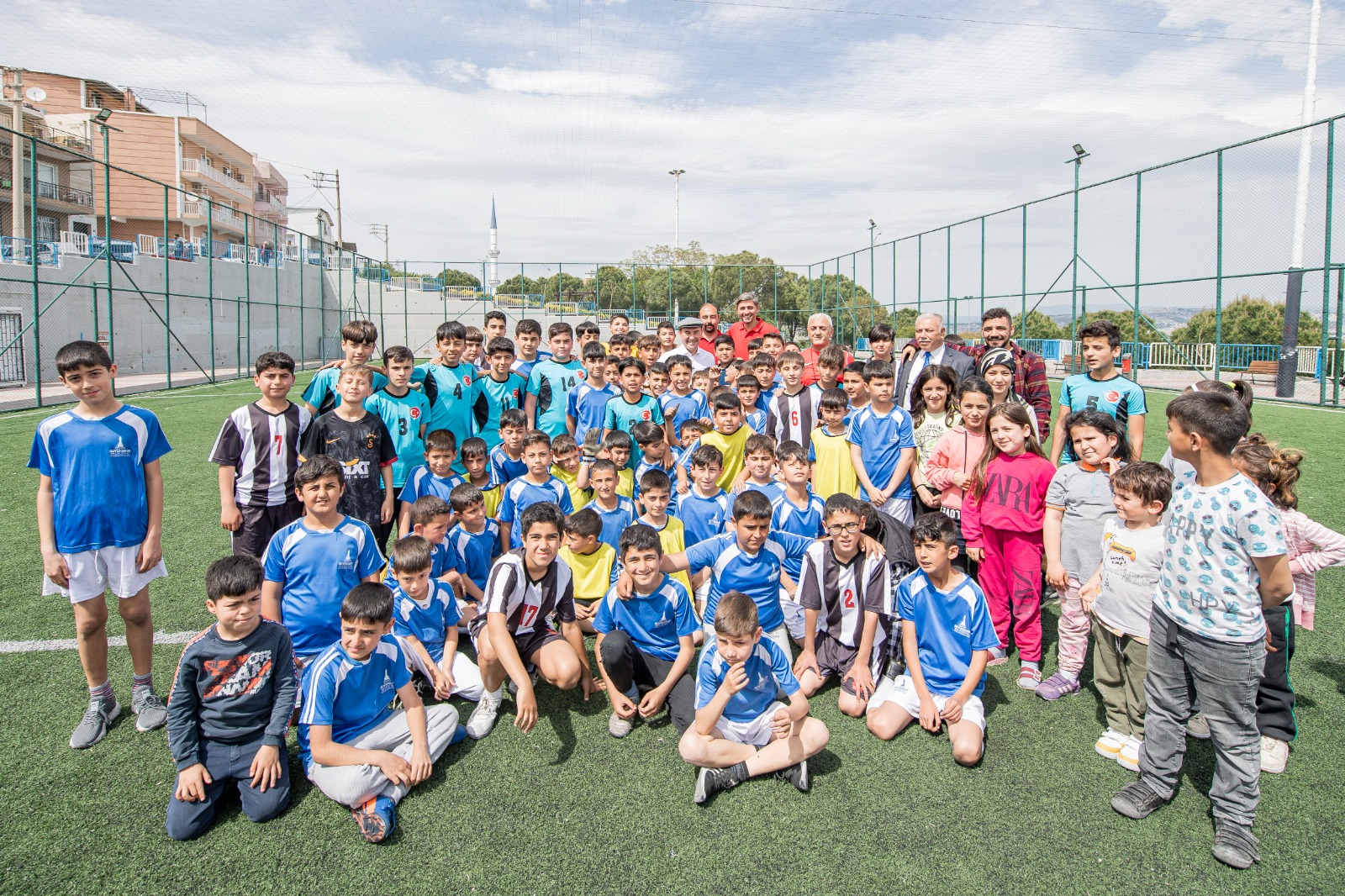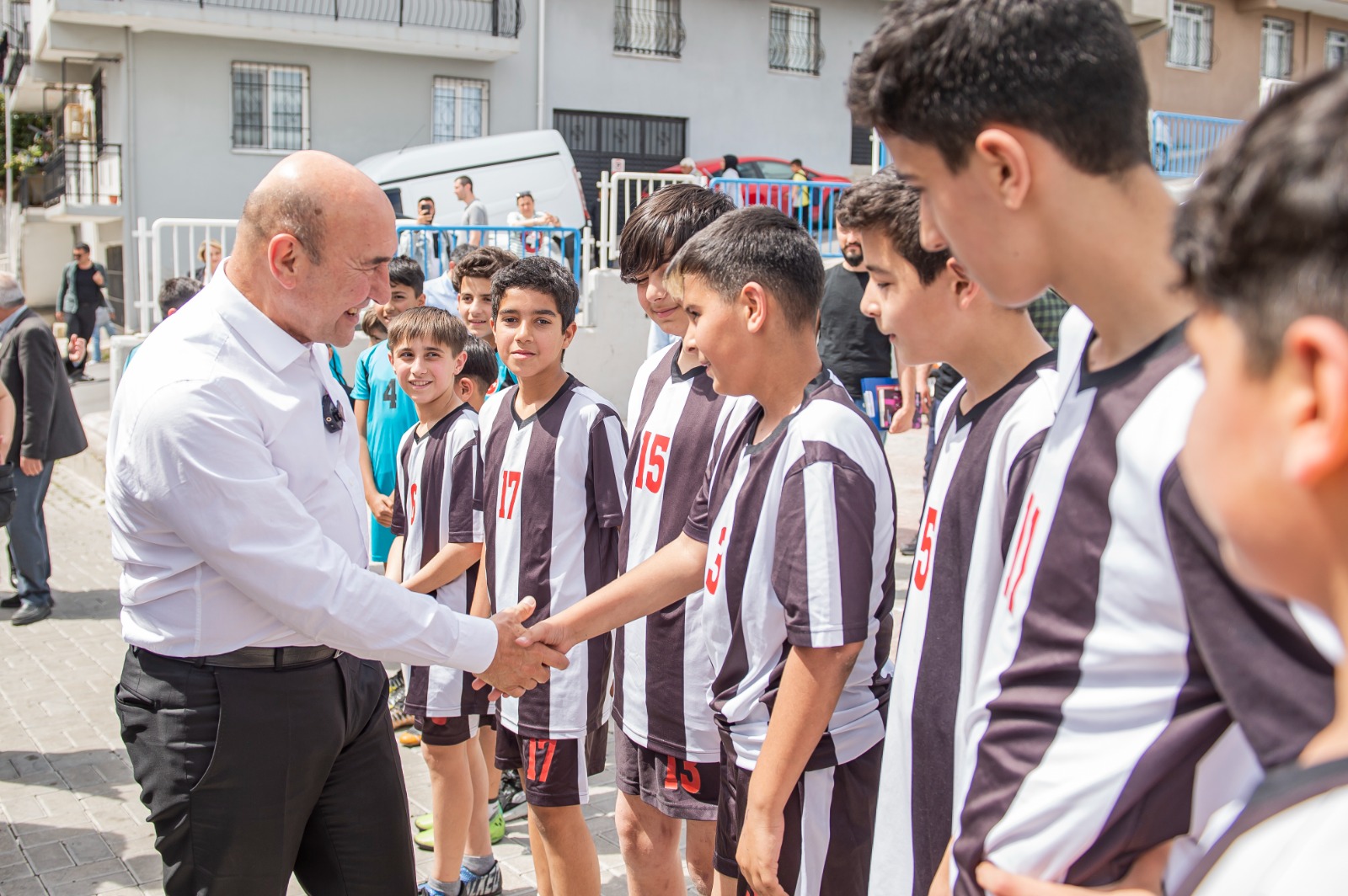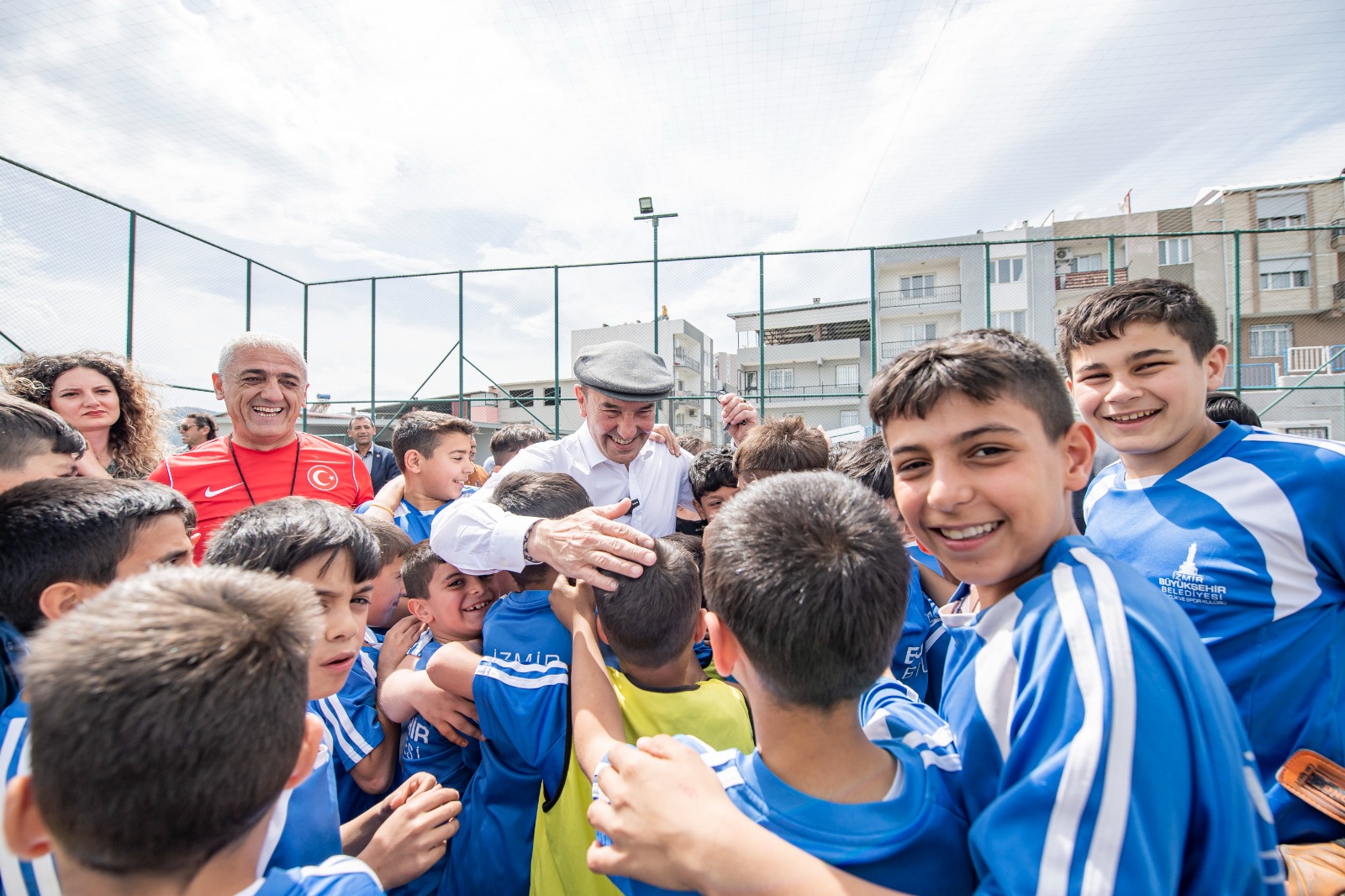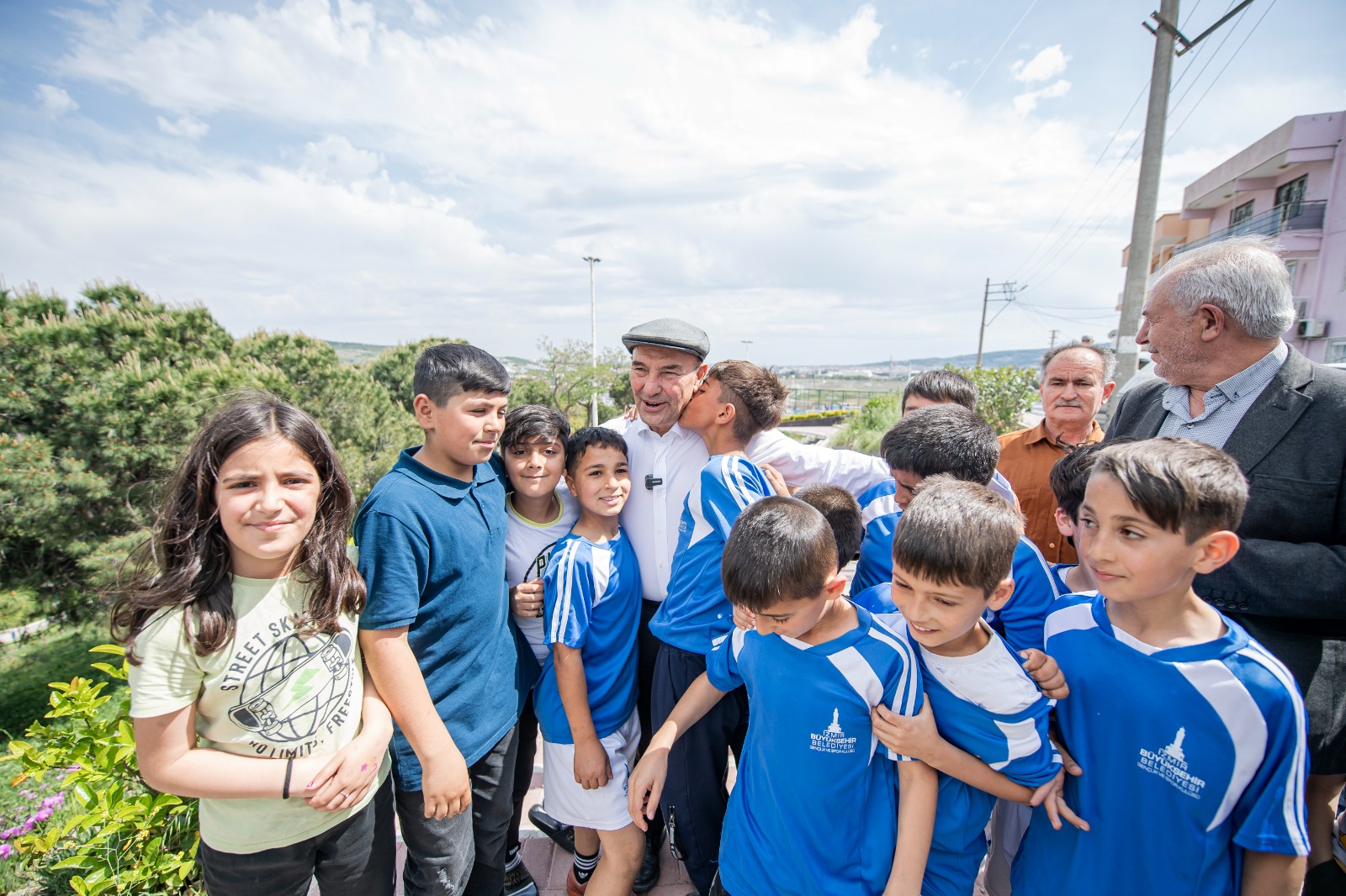 Başkan Tunç Soyer, Acil Çözüm Ekipleri tarafından düzenlenen Peker Mahallesi'ndeki Peker Parkı içerisinde yapılan halı sahayı da inceledi. Soyer, uzun yıllar atıl durumda kalan ve Büyükşehir Belediyesi tarafından yenilenerek hizmete sunulan, çocuklara ücretsiz spor eğitimleri verilen sahada çocuklarla bir araya geldi. Başkan Soyer, “Acil Çözüm Ekipleri'nin yaptığı en güzel çalışmalardan biri Peker Parkı'ndaki bu halı saha oldu. Çocuklar spora ne kadar yönelirse, kötü alışkanlıklardan o kadar uzak kalıyorlar. Hem ruhsal hem de bedensel gelişimleri için daha çok spor yapmaları lazım. O nedenle ne kadar çok hizmet üretsek az. Daha fazlasını yapacağız” dedi. Çocuklar da “En büyük başkan bizim başkan” sloganları attı.