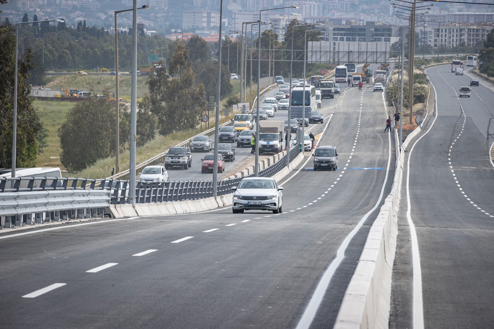 Buca ile Bornova’yı kesintisiz birbirine bağlayacak projenin 2,2 kilometrelik viyadük etabı hizmete açıldı. Bölgedeki trafiği rahatlatacak viyadükten aracıyla ilk geçen Başkan Tunç Soyer oldu. 2025’te tamamlanması planlanan projenin tünel etabında çalışmaların hızla ilerlediğini ifade eden Başkan Soyer, “Bugün İzmir için güzel bir gün, çünkü uzun zamandır çok ciddi bir yatırımla emek verdiğimiz projenin sonuna geldik. İzmir'e hayırlı olsun diyorum” dedi.