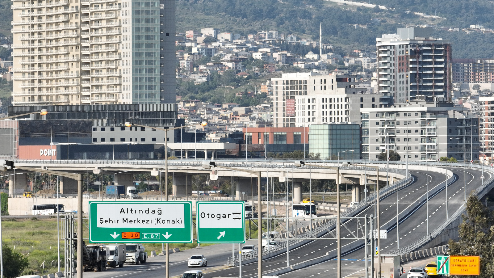 İzmir Büyükşehir Belediyesi, Buca ile Bornova’yı birbirine kesintisiz bağlayacak “Buca Onat Caddesi ile Şehirlerarası Otobüs Terminali ve Çevre Yolu Arası Bağlantı Yolu” projesinin ikinci etabında devam eden Buca Onat Tüneli çalışmalarını hızla sürdürüyor. Tünelin otogar üzerinden çevreyolu bağlantısını sağlayacak 2,2 kilometrelik viyadük etabı tamamlandı. İzmir Büyükşehir Belediye Başkanı Tunç Soyer ve İzmir Büyükşehir Belediyesi Genel Sekreter Yardımcısı Özgür Ozan Yılmaz'ın ilk sürüşüyle viyadükler hizmete açıldı. Viyadük ve alt geçitlerin hizmete girmesiyle Bornova ve terminal önündeki araç trafiği rahatlayacak.