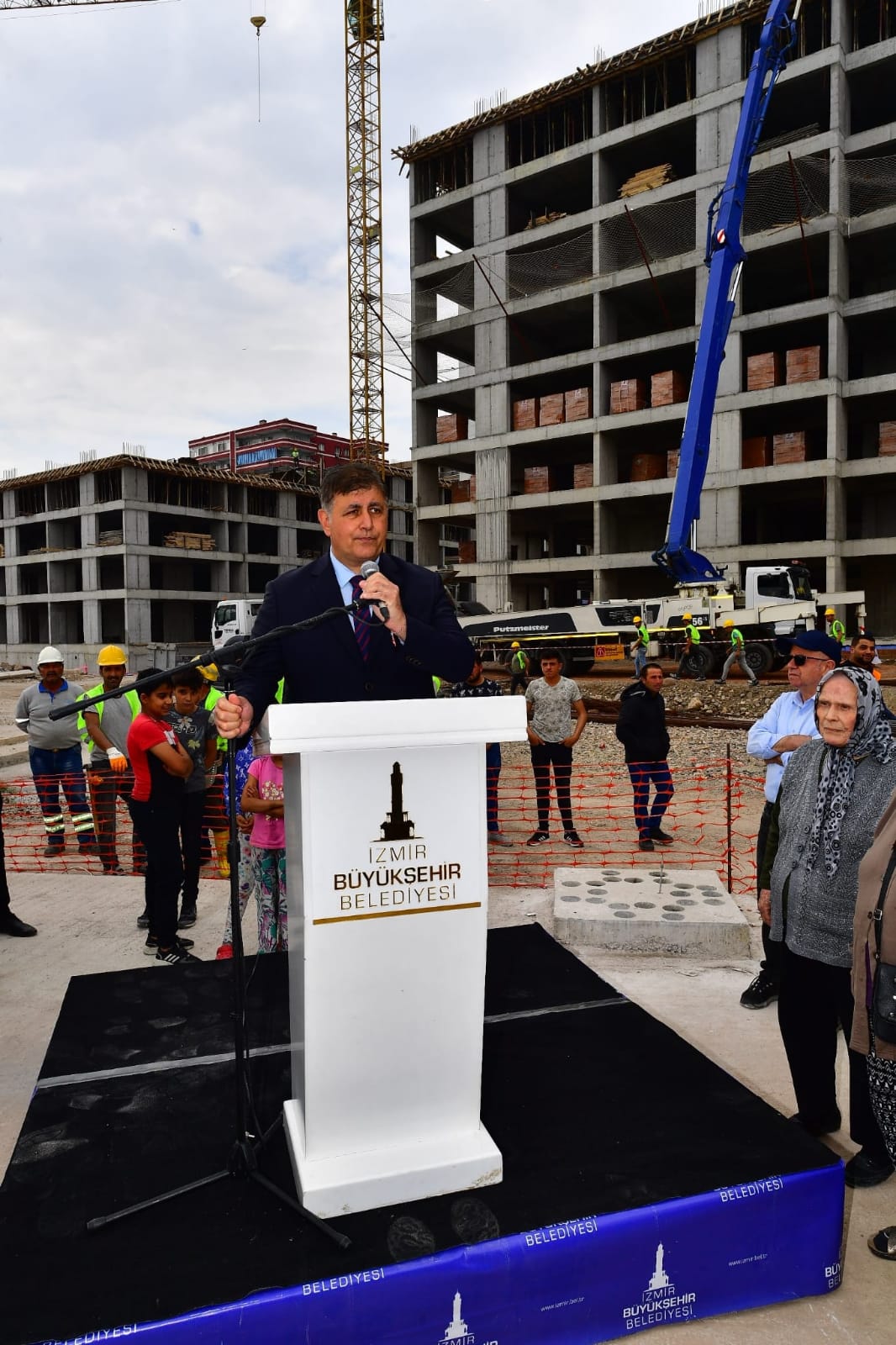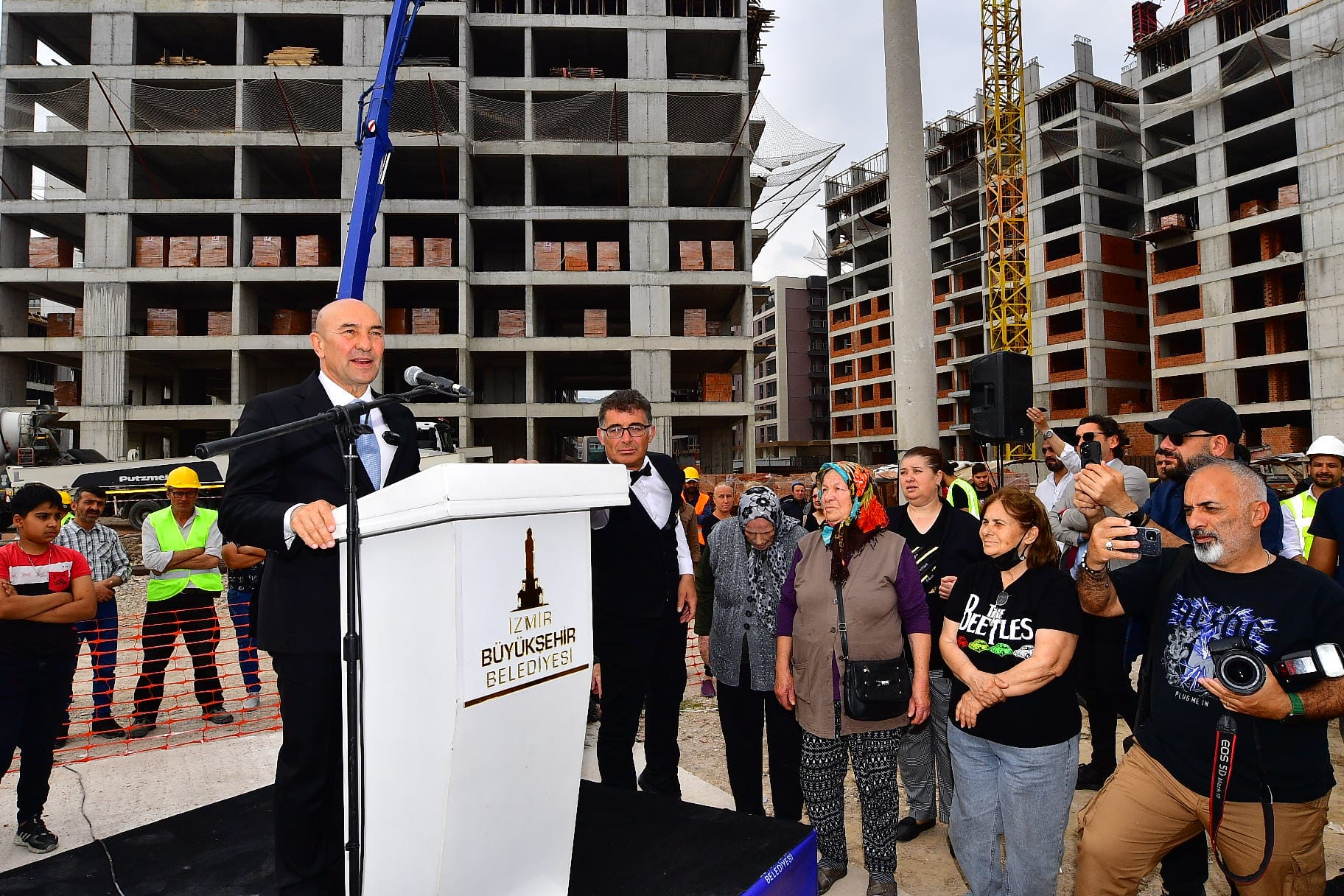 Karşıyaka Belediye Başkanı Cemil Tugay, “Yaşadığımız depremlerden dolayı bir kentsel dönüşüm ihtiyacı içinde olduğumuzu hepimiz biliyoruz. İzmir Büyükşehir Belediyesi uzun zamandır İzmir’de kentsel dönüşümü gerçekleştirmek için kendi kaynaklarıyla özveri göstererek, hiçbir yerden destek almadan bu çalışmaları yapıyor. Çok ağır ekonomik koşullar var. Böyle bir ortamda İzmir Büyükşehir Belediyesi hiçbir yerden destek almadan çok başarılı olan bir kooperatif modeliyle burada kentsel dönüşümü gerçekleştiriyor” diye konuştu.