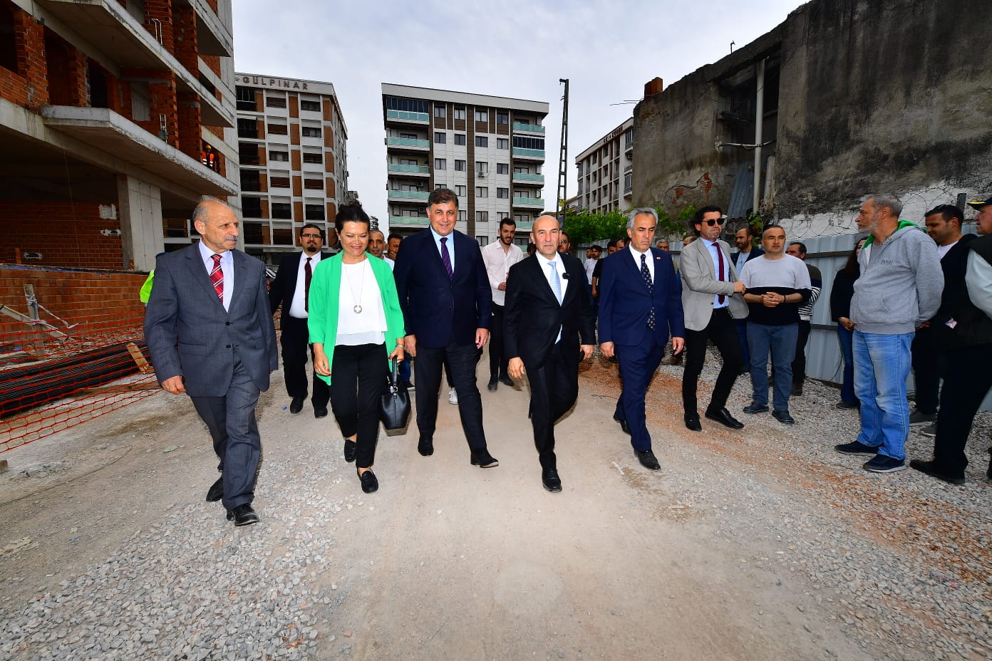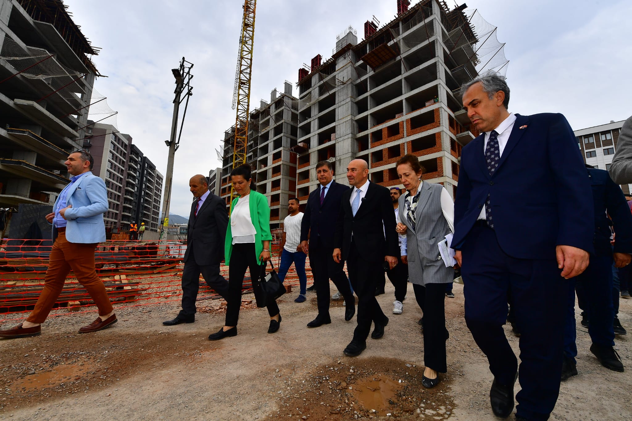 İzmir Büyükşehir Belediye Başkanı Tunç Soyer, yüzde yüz uzlaşı, belediye garantörlüğü, yerinde dönüşüm ve kooperatifçilik modeliyle çalışmaların yürütüldüğü Karşıyaka Örnekköy Kentsel Dönüşüm projesi kapsamında 3 ve 4’üncü etabın hak sahipleri ve kooperatif ortaklarıyla bir araya geldi. Konut ve iş yerlerinin yapım çalışmalarını yerinde inceleyen Başkan Tunç Soyer’e Cumhuriyet Halk Partisi (CHP) İzmir İl Başkanı Şenol Aslanoğlu, Karşıyaka Belediye Başkanı Cemil Tugay, İzmir Büyükşehir Belediyesi Genel Sekreter Yardımcısı Suphi Şahin, İzmir Büyükşehir Belediyesi Kentsel Dönüşüm Dairesi Başkanı Ayşe Arzu Özçelik, İZBETON A.Ş. Genel Müdürü Heval Savaş Kaya, projede yer alan kooperatiflerin yönetici ve temsilcileri eşlik etti.