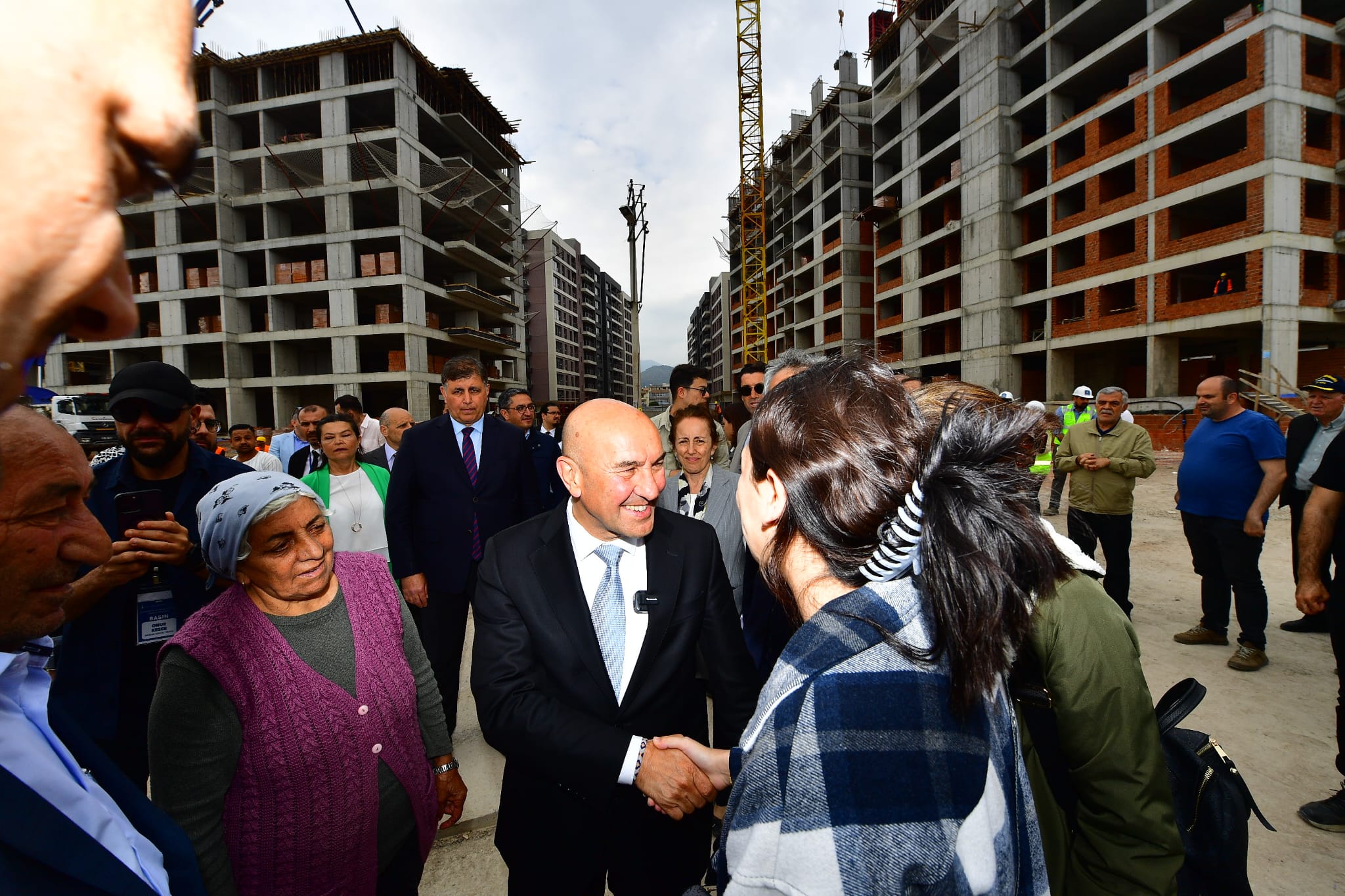 Başkan Tunç Soyer, “Hak sahipleriyle kooperatif ortaklarını bir araya getirelim, iş nasıl yürüyor, onu yerinde görelim istedik. Örnekköy modeli Türkiye’ye örnek olacak. Neden biliyor musunuz? Arada bu işin rantını yiyen bir müteahhit yok. Burada bir kooperatif ve hak sahipleri var, bir de belediye var. Bu iki yapı arasında dengeyi tutan, vatandaşın hakkını, hak sahibinin hakkını koruyan ve çok hızlı bir biçimde bu işin sonuçlanması için kurumsal desteğini ortaya koyan bir belediye var. Özetle; depremden sonra dirençli kentler, insanların güvenle yaşadığı kentler yaratmak boynumuzun borcu. Bunu yapmak için elimizden ne geliyorsa yapacağız. Birinci önceliğimiz bu şehirde yaşayan herkesin oturduğu evden güven duymasıdır. Bunu yapmak için canla başla, aşkla çalışmaya devam edeceğiz. İçiniz rahat olsun. Güvenli ellerdesiniz. Tıkır tıkır yürüyen çok temiz bir inşaat var. İnşallah en kısa sürede de hep beraber sizlerin o konutlara taşındığını göreceğiz” dedi.