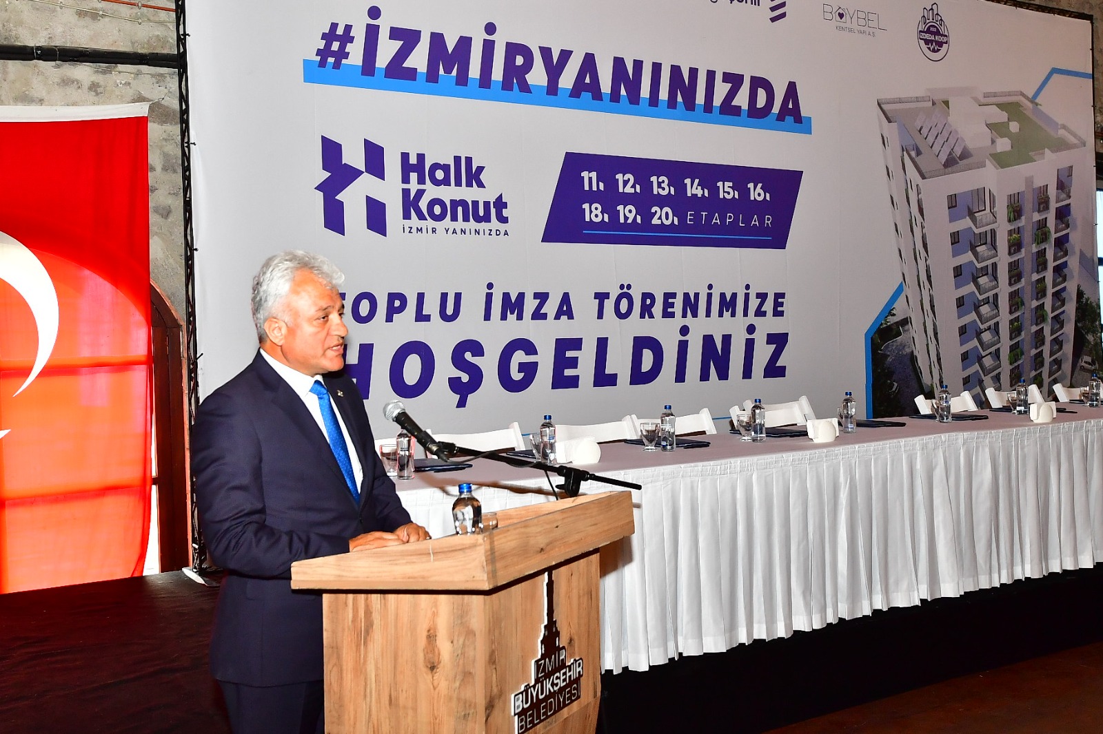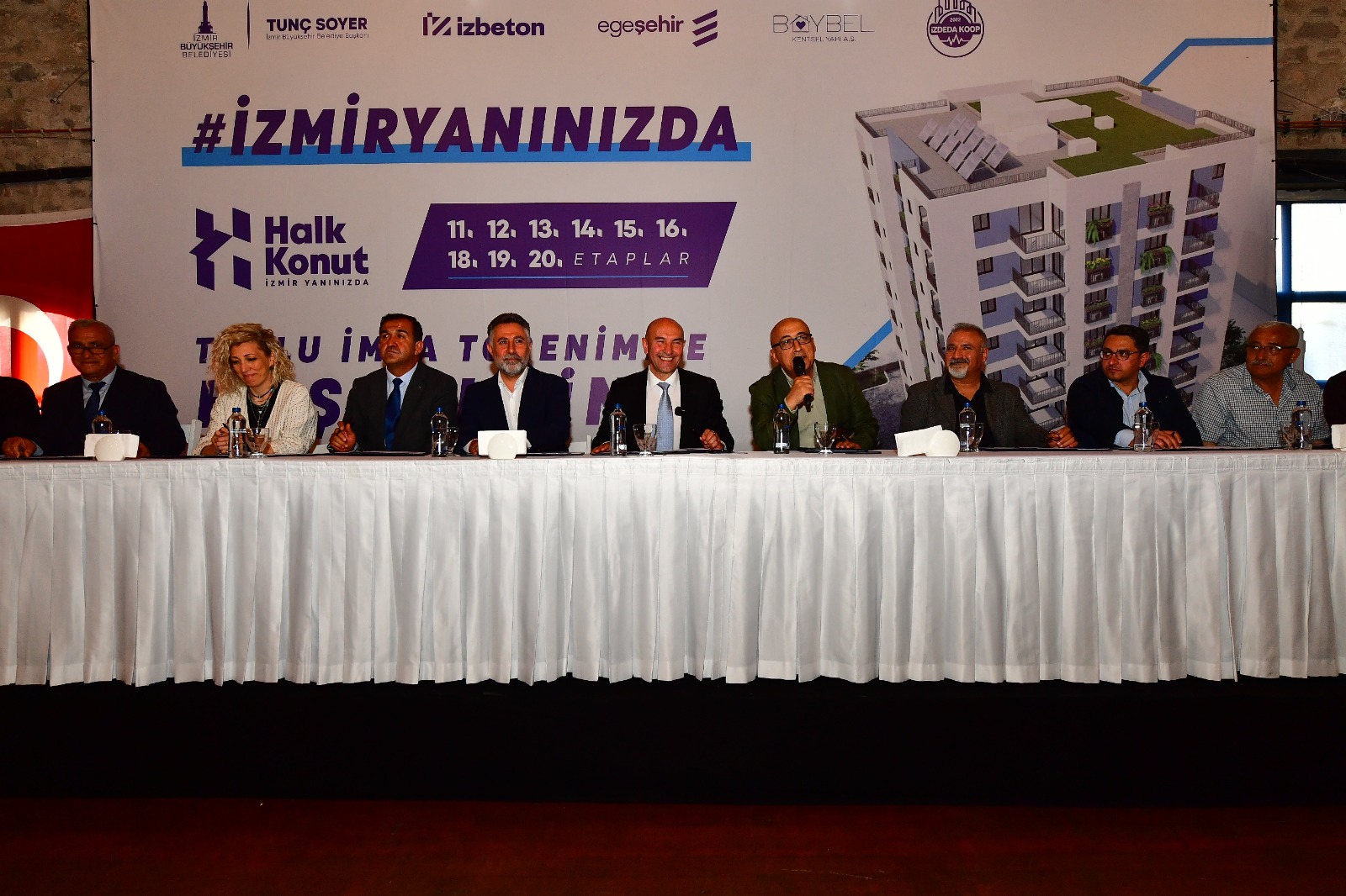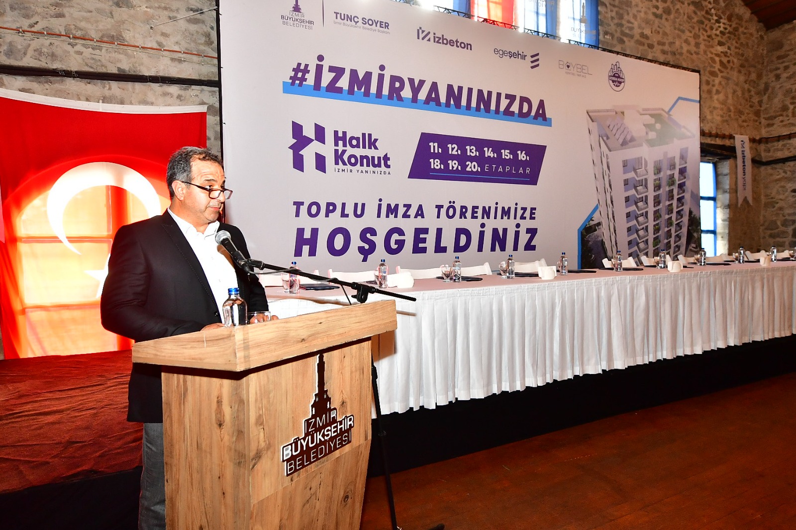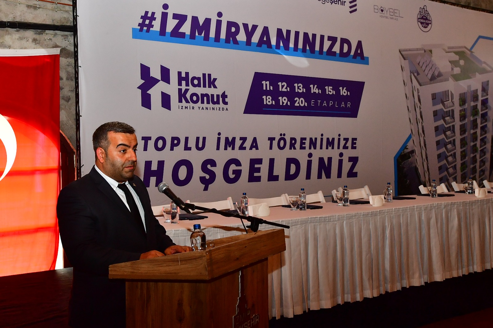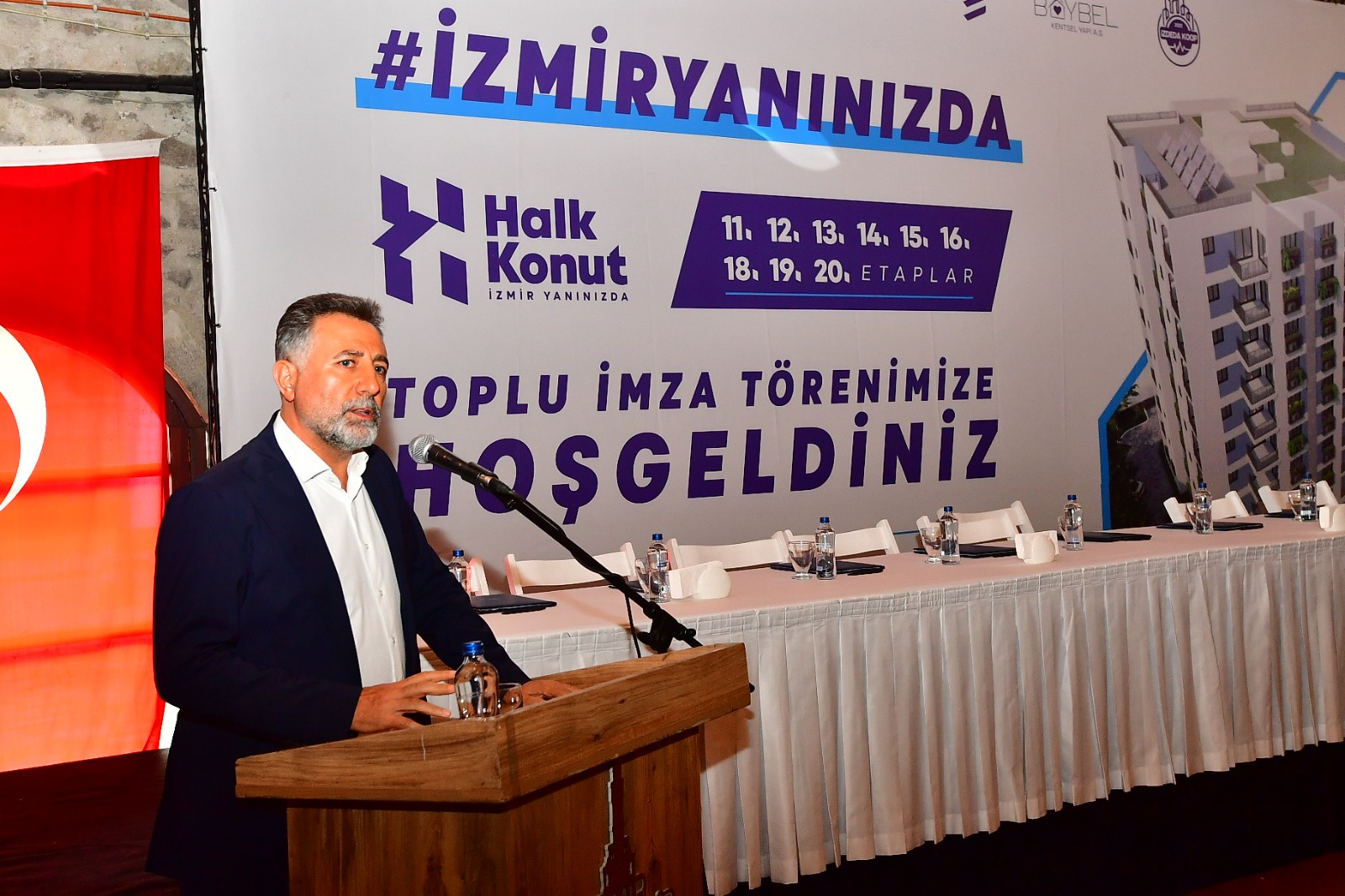 İzmir Büyükşehir Belediyesi tarafından Türkiye’de ilk kez hayata geçirilen Halk Konut Projesi 9 yeni kooperatifin daha katılımıyla 18 kooperatife ulaştı. Örnek kentsel dönüşüm modeli için konuşan Büyükşehir Belediye Başkanı Tunç Soyer, “Bundan sonra yepyeni bir yol açılıyor. Halkın iktidarında Halk Konut bambaşka bir destan yazacak” dedi.