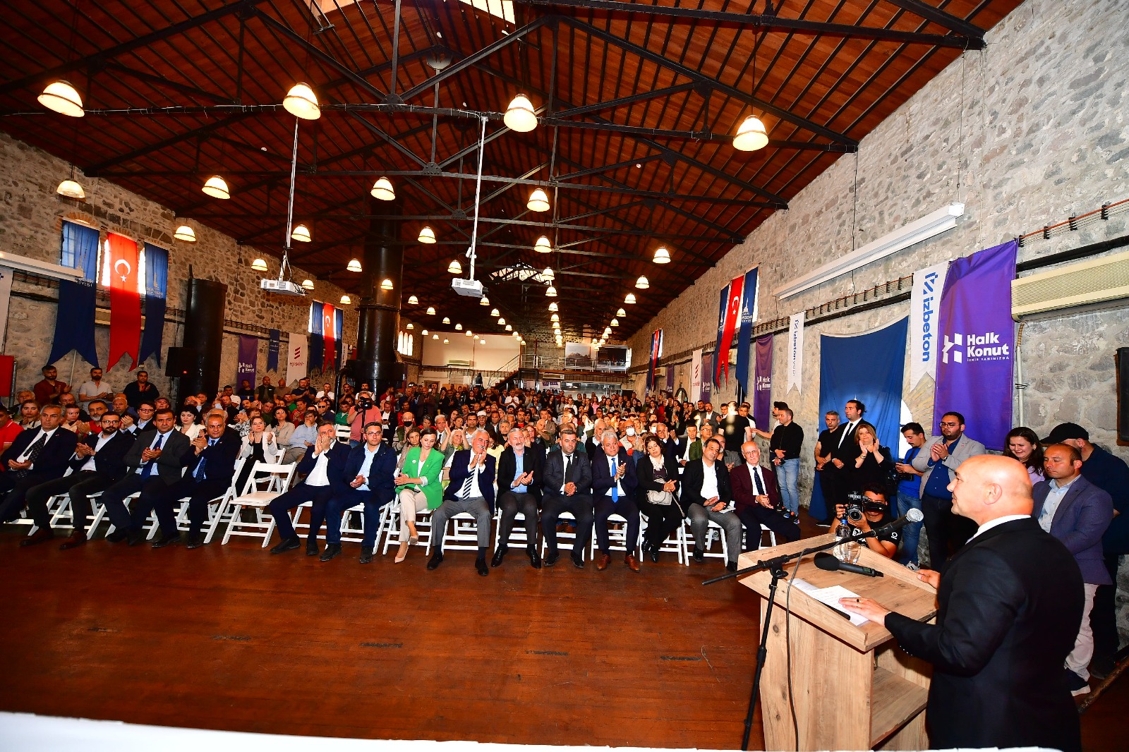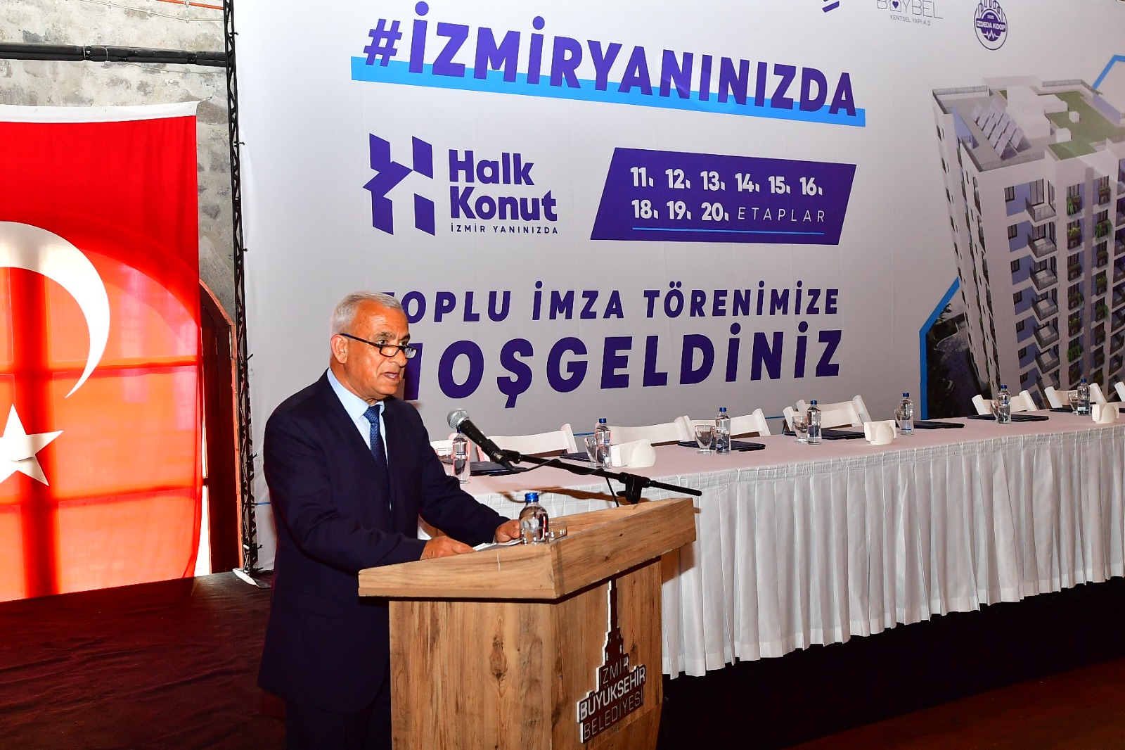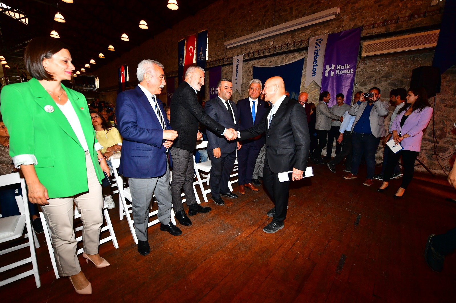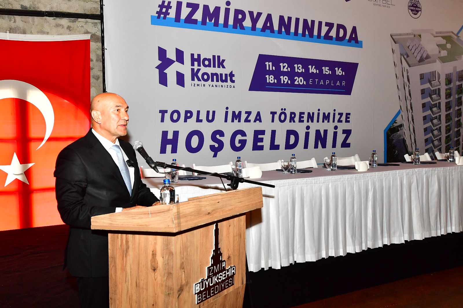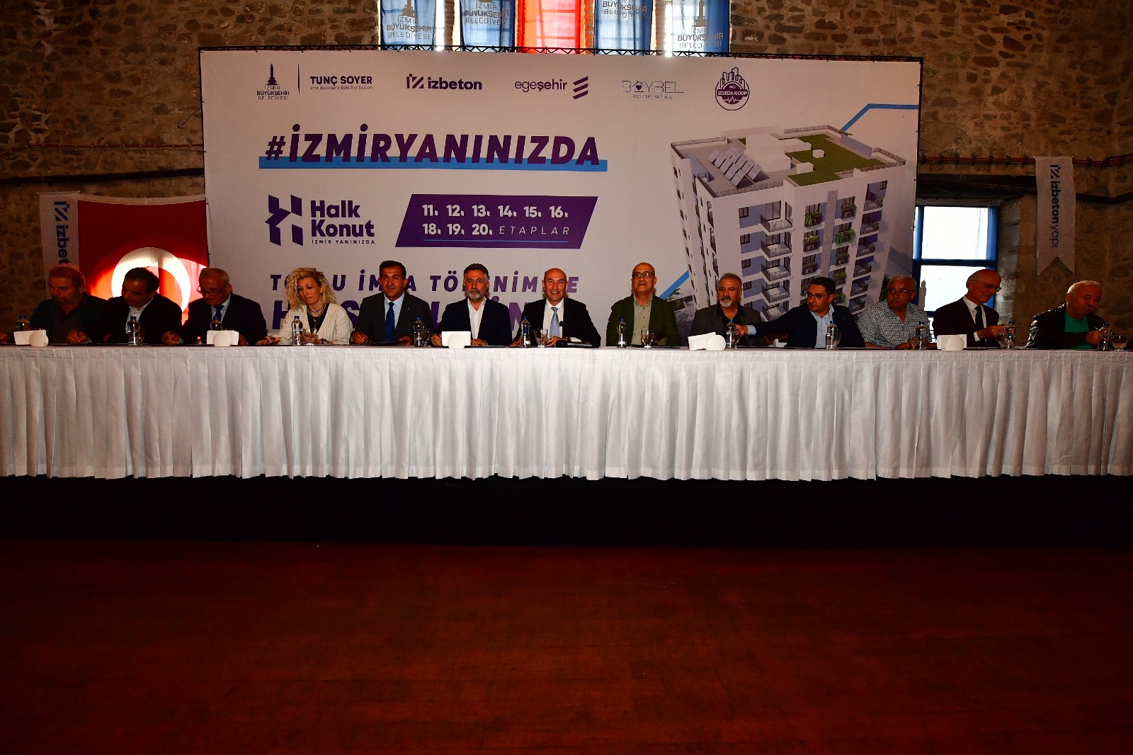 İzmir Büyükşehir Belediyesi tarafından Türkiye’de ilk kez hayata geçirilen Halk Konut Projesi 9 yeni kooperatifin daha katılımıyla 18 kooperatife ulaştı. Örnek kentsel dönüşüm modeli için konuşan Büyükşehir Belediye Başkanı Tunç Soyer, “Bundan sonra yepyeni bir yol açılıyor. Halkın iktidarında Halk Konut bambaşka bir destan yazacak” dedi.