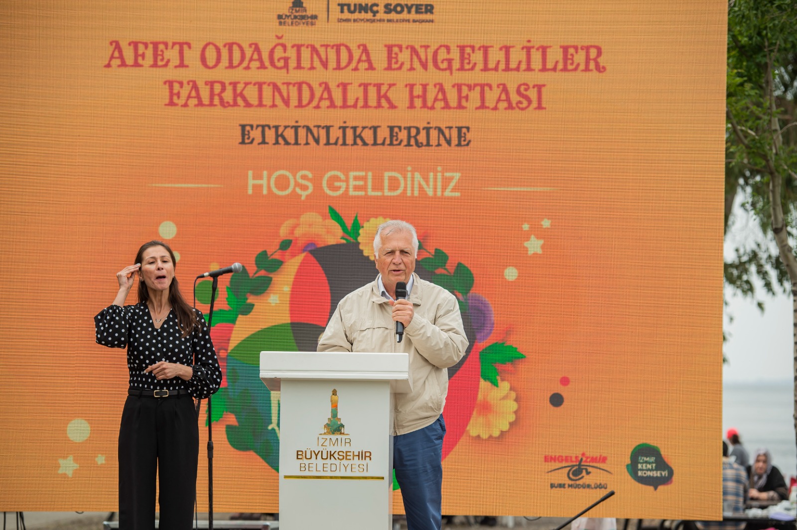İzmir Büyükşehir Belediye Başkanı Tunç Soyer'in “Engelsiz İzmir” hedefini “Başka Bir Engelli Politikası Mümkün” anlayışıyla güçlendiren İzmir Büyükşehir Belediyesi, “Afet Odağında Engelliler Farkındalık Haftası” temalı etkinlikleri İnciraltı Engelliler Merkezi’nde düzenledi. Programa İzmir Büyükşehir Belediye Başkanı Tunç Soyer’in eşi Neptün Soyer, Balçova Belediye Başkanı Fatma Çalkaya, CHP Genel Başkan Yardımcısı Yüksel Taşkın, İzmir Büyükşehir Belediyesi Genel Sekreter Yardımcısı Ertuğrul Tugay, Engelsizmir Komite Başkanı Doç. Dr. Levent Köstem, Melek İzciler Bando Takımı, Kent Konseyi, engelli sivil toplum kuruluşları, belediye bürokratları, meclis üyeleri, muhtarlar ve aileler katıldı.