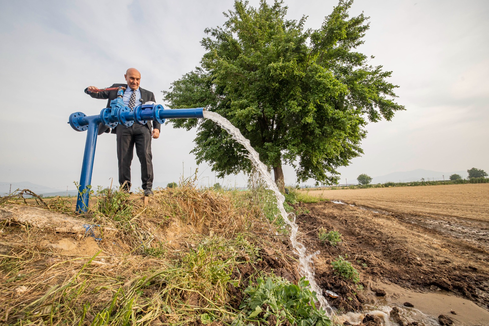 İZSU Genel Müdürlüğü’nün “Cumhuriyet’in 100’üncü Yılında 100 Proje” başlığıyla başlattığı yatırım atağı ilk meyvasini verdi. Kuraklıkla mücadelede atık suların geri kazanılarak tarımda kullanılması projesi Bayındır’da başladı. İzmir Büyükşehir Belediye Başkanı Tunç Soyer, Bayındır Hasköy Atık Su Arıtma Tesisi’ne giderek faaliyete geçen tesiste incelemelerde bulundu. Vanayı açarak arıtılan ilk suyu tarlaya veren Büyükşehir Belediye Başkanı Tunç Soyer, Hasköy Atıksu Arıtma Arıtma Tesisi’nden geri kazanılan A sınıfı sulama suyunun, sembolik olarak 0,1 kuruştan çiftçilere verileceğini müjdeledi