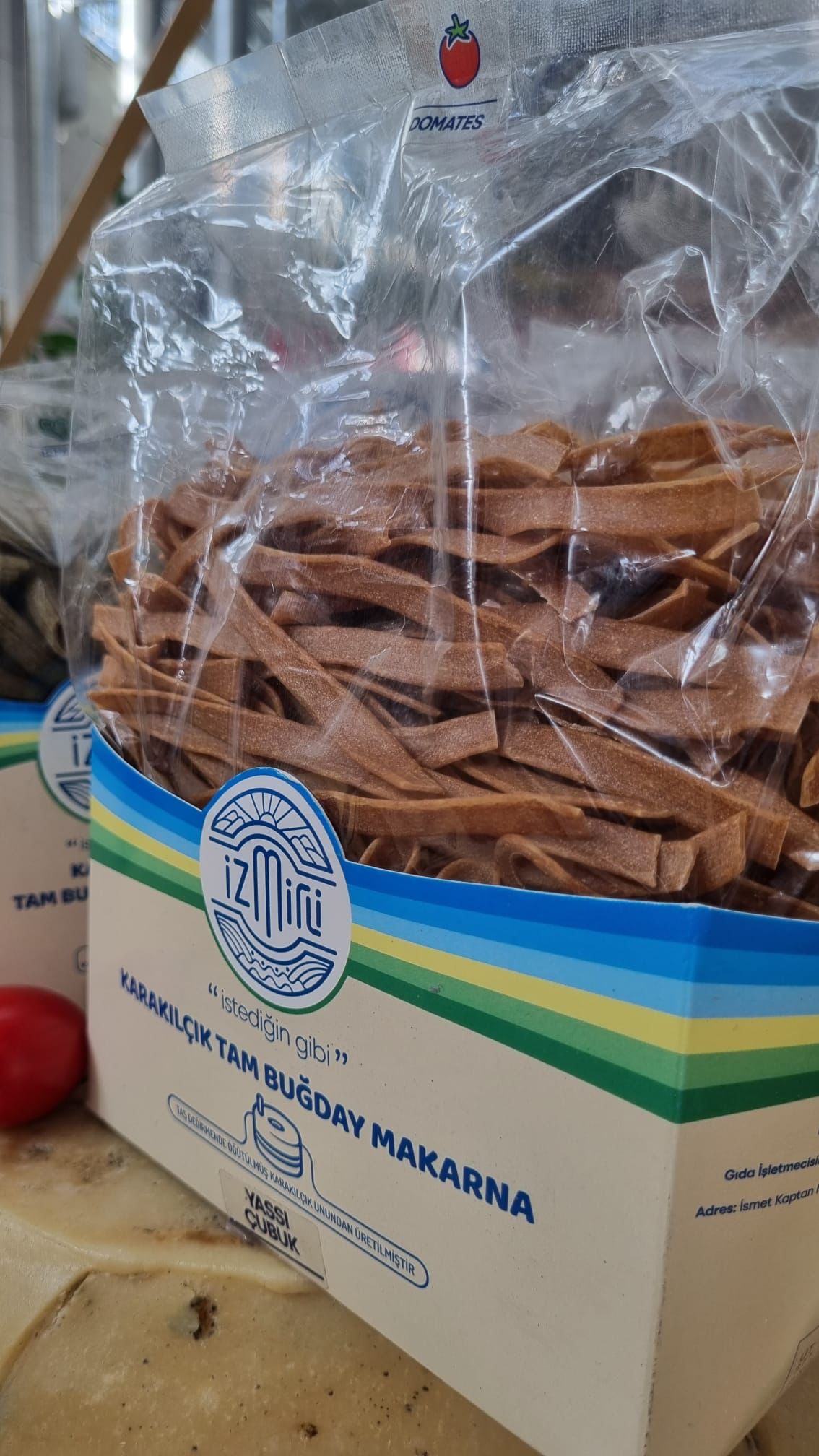 Terra Madre İzmir fuarıyla lansmanı yapılarak tüketicilerin beğenisine sunulan İzmirli markalı karakılçık makarnası, karakılçık buğdayından elde edilen ve taş değirmende üretilen unla katkısız koruyucusuz olarak yapılıyor. Sağlıklı ve güvenli İzmirli makarna Penne, Fusulli, Tagliatelle, Yassı, Arpa Şehriye, Çocuk çeşitleri ve sebzeli seçenekleriyle raflarda yer alıyor. İzmirli makarnaları, Halkın Bakkallarında ve izmirliden.com web sitesinden satın alınabiliyor.