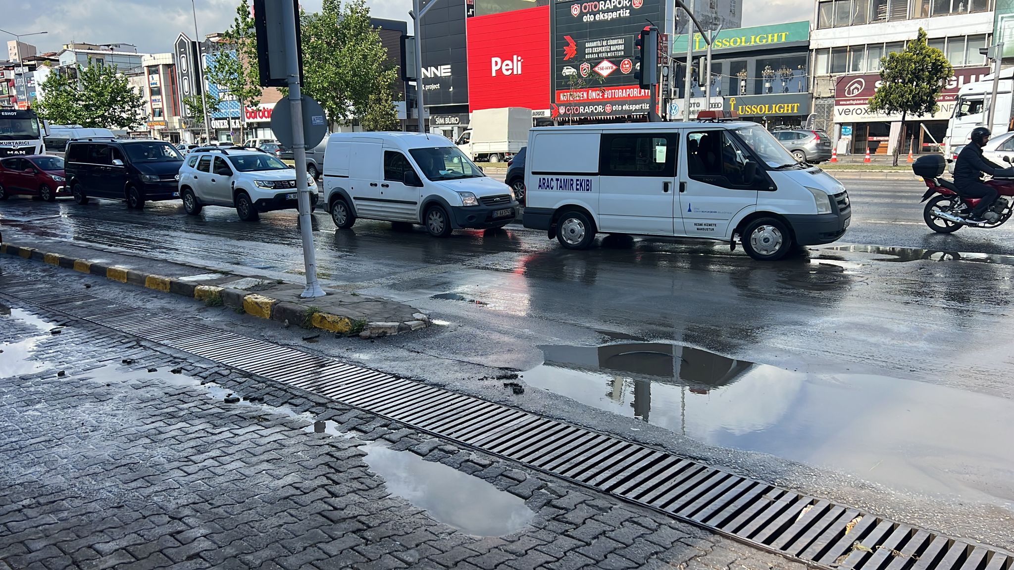 İzmir’de öğleden sonra etkili olan sağanak yağışın yaşamı olumsuz etkilememesi için İZSU ekipleri yoğun mesai harcadı. Kısa sürede düşen aşırı miktardaki yağış ana arterlerde zaman zaman trafiği aksatsa da ekipler sorunlu noktalara hızlı bir şekilde müdahale etti.
