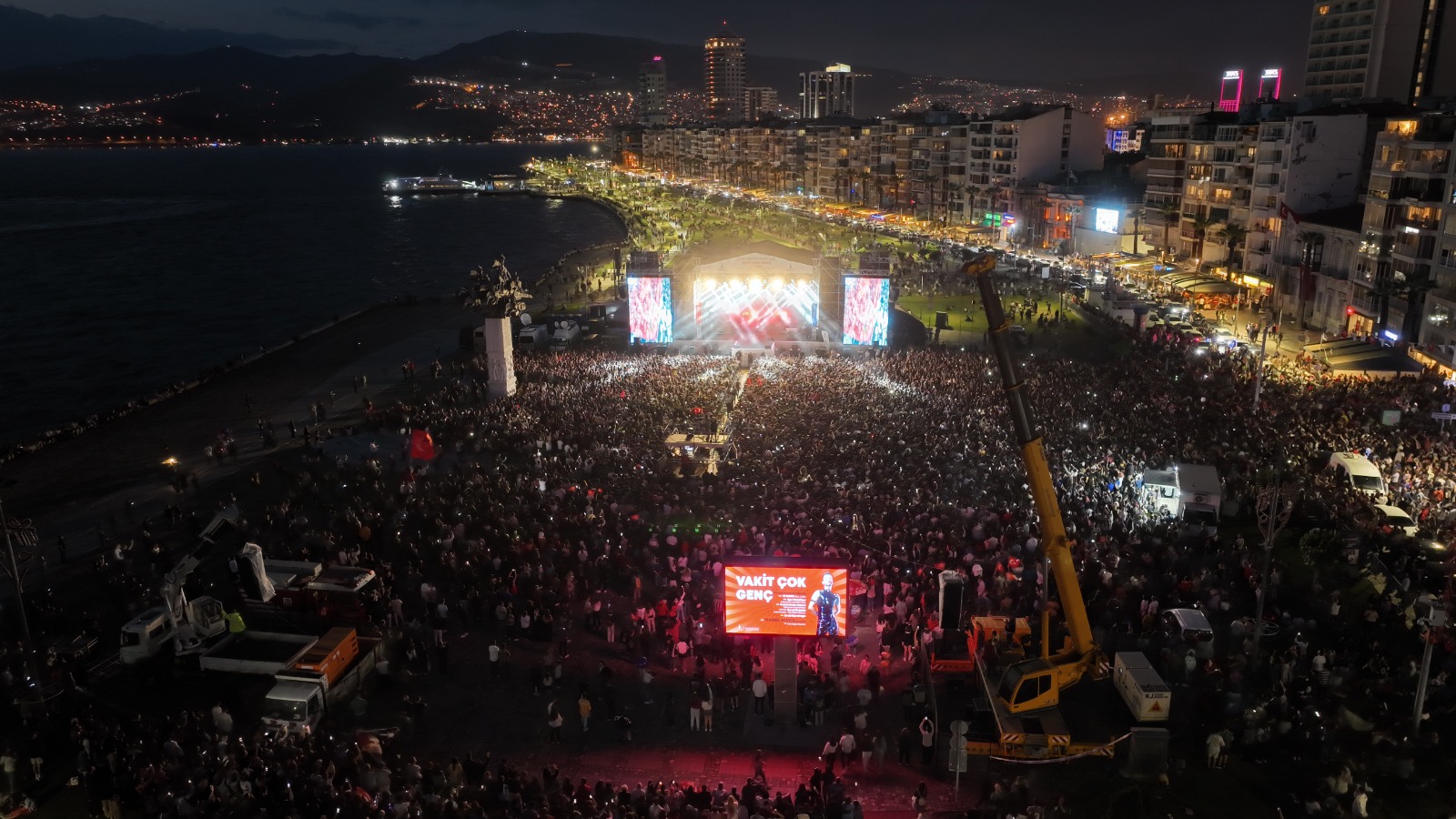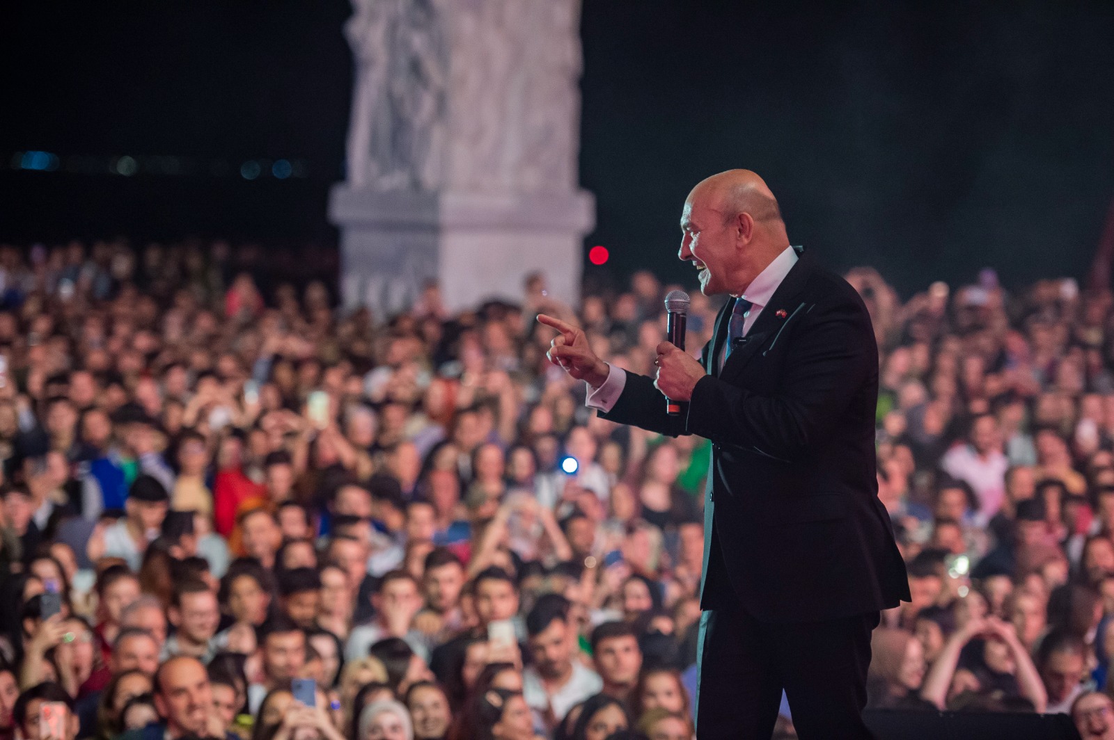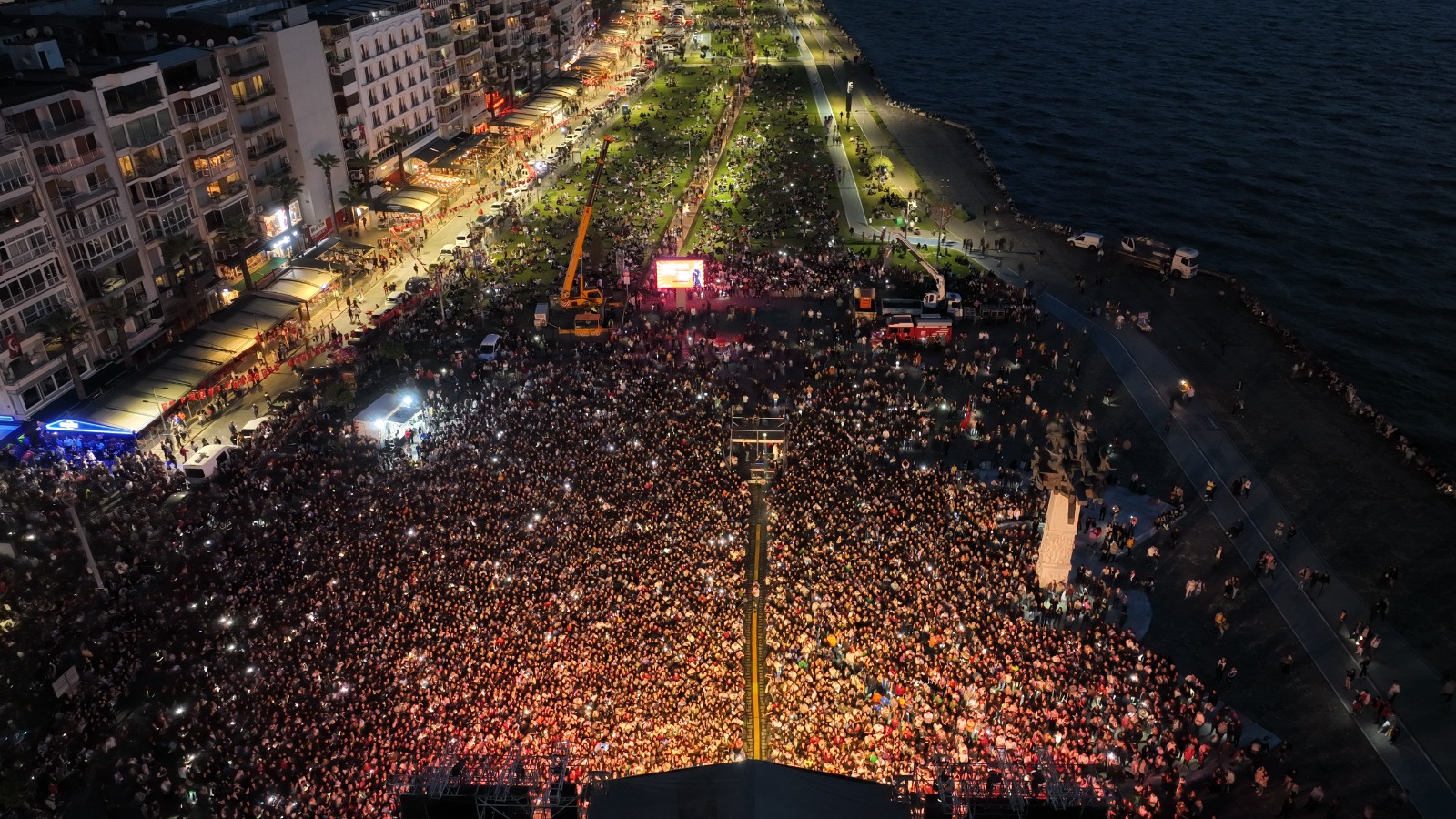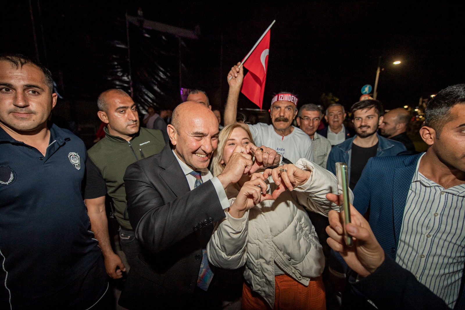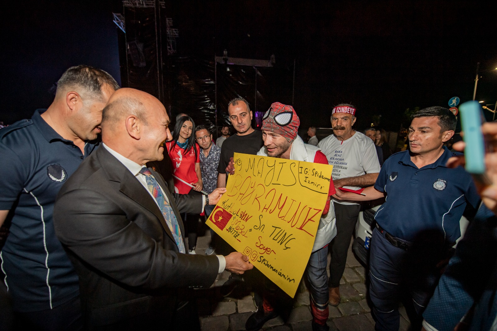 İzmir Büyükşehir Belediye Başkanı Tunç Soyer de daha sonra sahneye çıkarak, Matiz'e “Zeytin ölümsüzlük ve barışın simgesidir” diyerek zeytin fidanı hediye etti. Ardından alanı dolduran kalabalığa seslenen Başkan Soyer, “İzmir, güzel İzmir. Güzel İzmir'in güzel insanları. İzmir, biz Mustafa Kemal'in evlatlarıyız. Atatürk 'Zafer, zafer benimdir diyebilenlerindir' diyor. Zafer bizim mi” diye sordu. Konser için Gündoğdu Meydanı'nı dolduran kalabalık da “Evet” yanıtını verdi. Bunun üzerine Soyer, “Zaferin bizim olması için bir şey yapmamız lazım. 8 gün sonra sandıktayız. Söz mü? 10 yıllarınızı kurtaracak refah, adalet, özgürlük size akacak. 8 gün sonra sandıkta mısınız?” Kalabalık bir kez daha “Evet” karşılığını verdi. Tunç Soyer de “Söz mü?” diye karşılık verince kalabalık bir kez daha “Evet” diye haykırdı. Soyer de “Canım feda size güzelim İzmirliler. Kazanacağız.