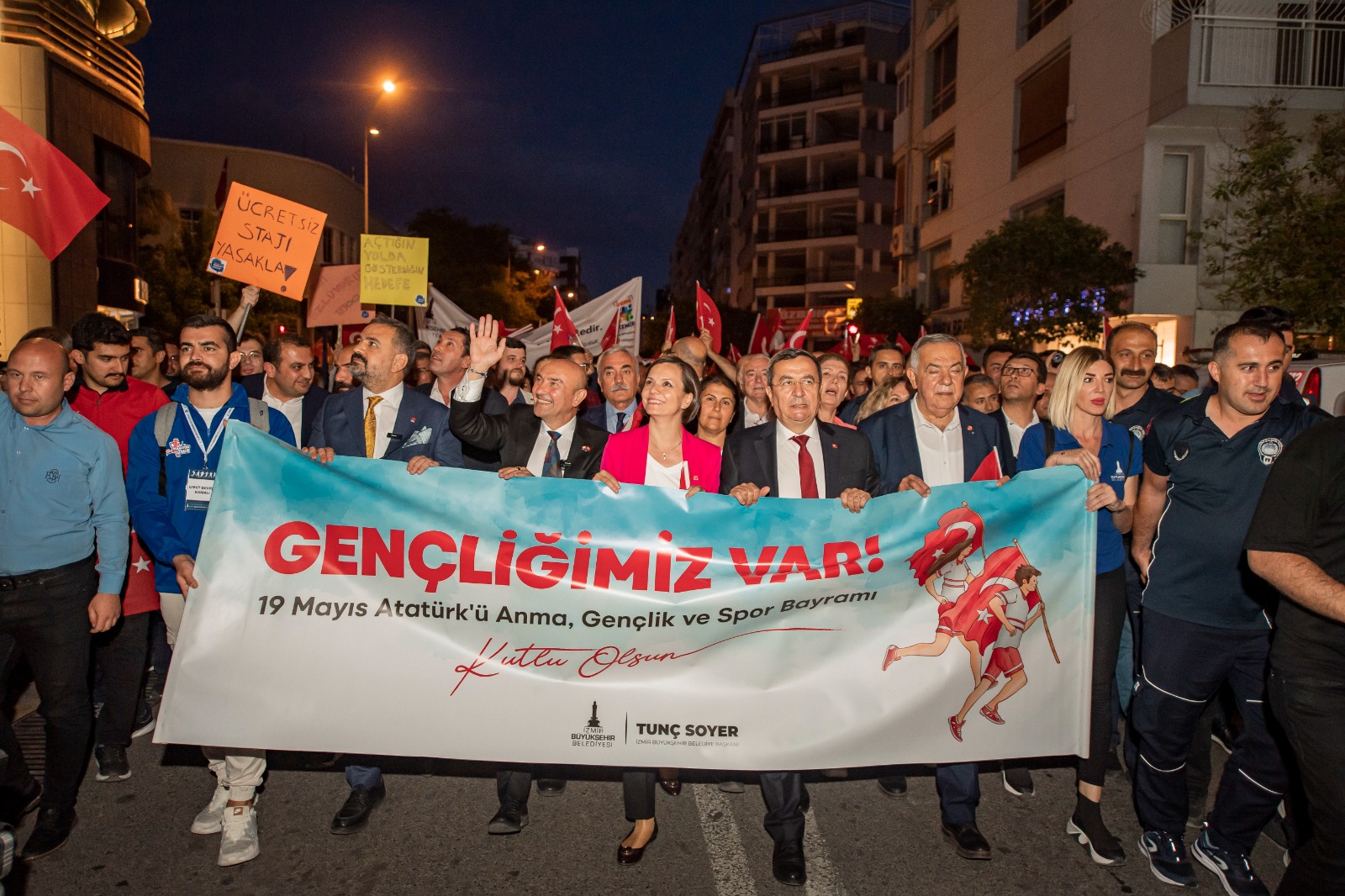 İzmir Büyükşehir Belediyesi, 19 Mayıs Atatürk'ü Anma Gençlik ve Spor Bayramı etkinlikleri kapsamında “Gençlik Yürüyüşü” düzenledi. Kültürpark Lozan kapısı girişinde başlayan yürüyüşe İzmir Büyükşehir Belediye Başkanı Tunç Soyer, CHP İzmir İl Başkanı Şenol Aslanoğlu, ilçe belediye başkanları, yurttaşlar ve gençler katıldı. Kalabalık elinde pankartlarla Gündoğdu Meydanı'na kadar yürüdü.