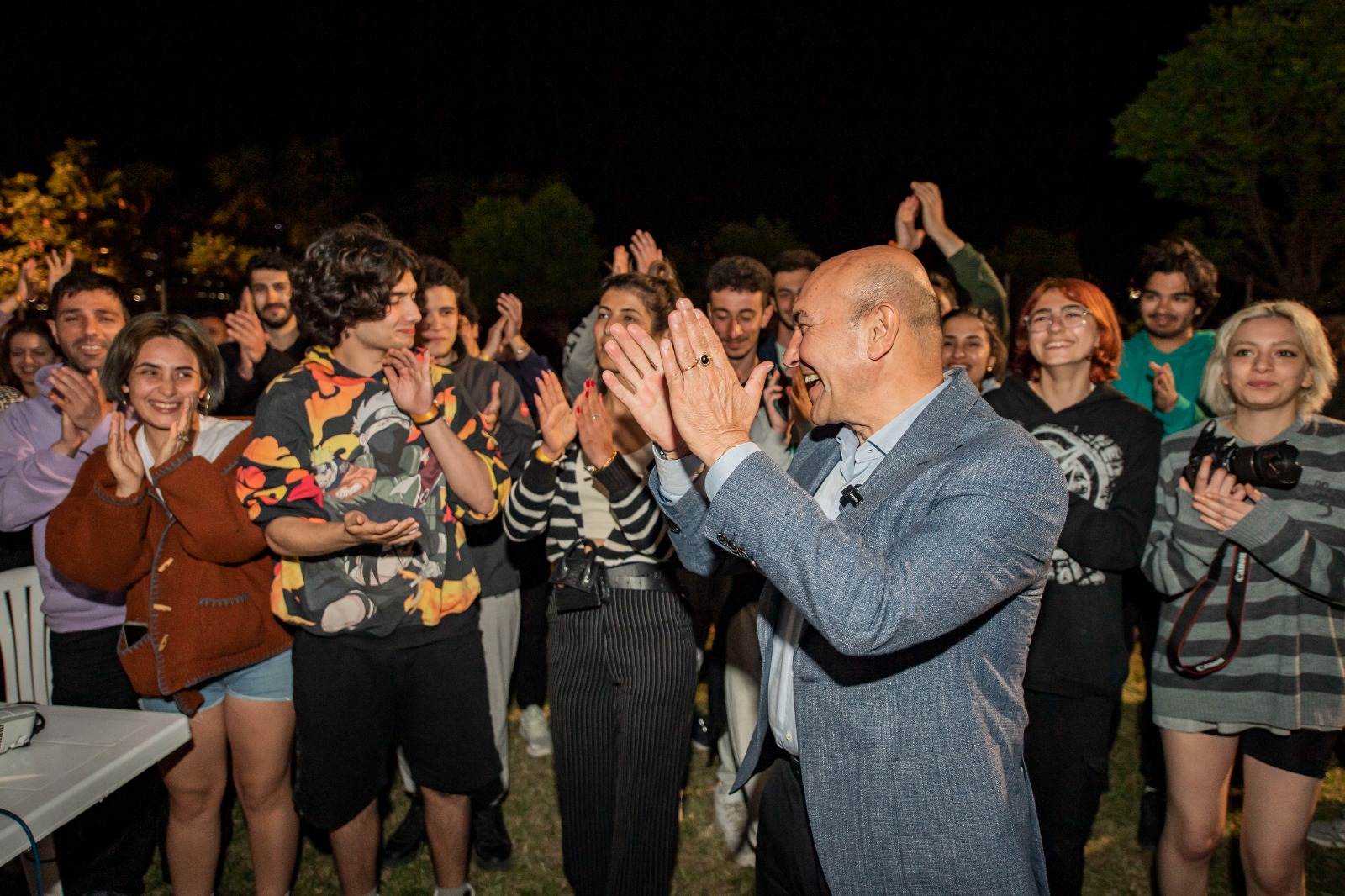 İzmir Büyükşehir Belediye Başkanı Tunç Soyer, 5. İzmir Gençlik Festivali için Türkiye’nin dört bir yanından kente gelerek Macera Park’ta çadır kuran üniversite öğrencilerine sürpriz yaptı.