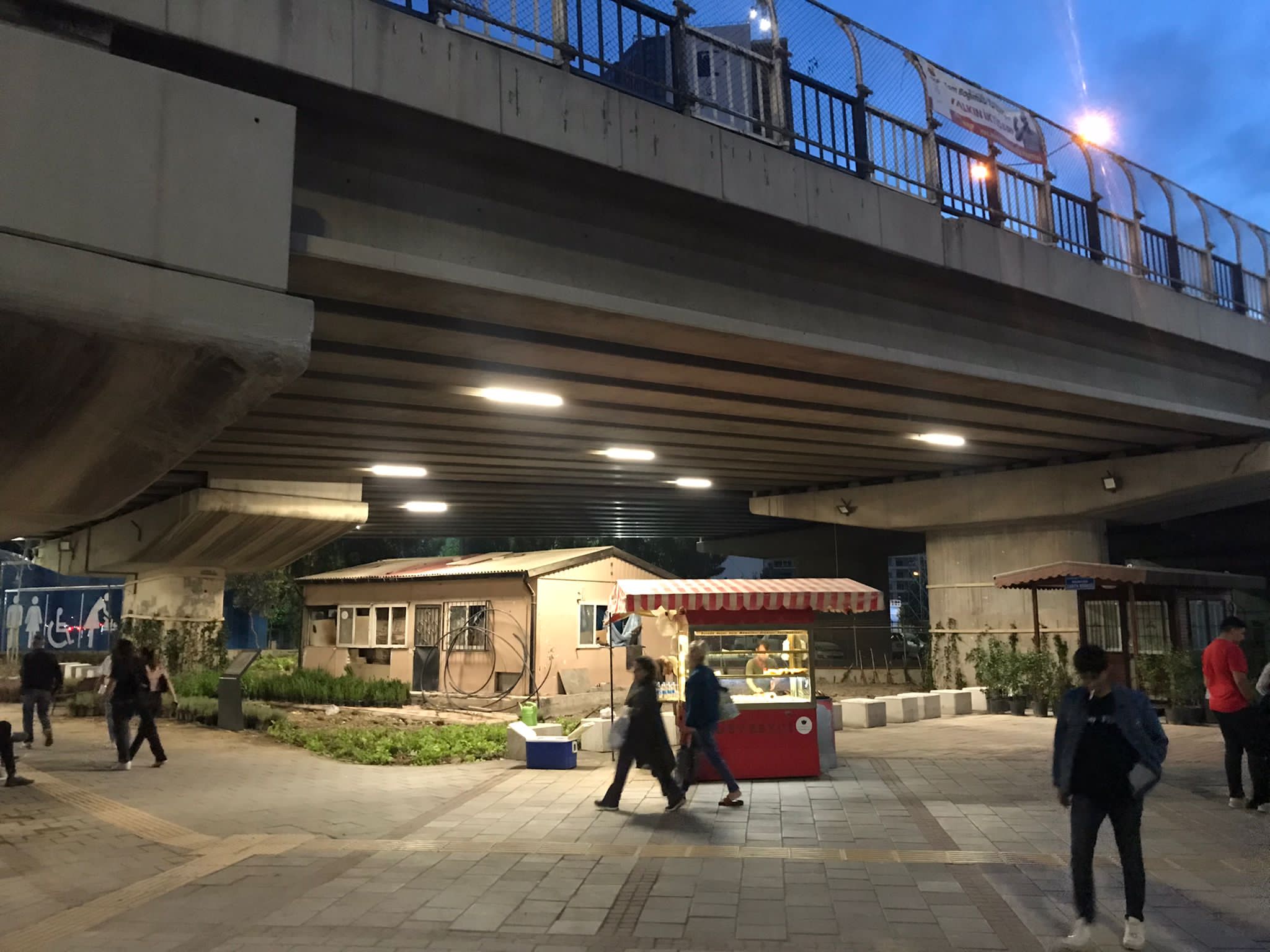 16 bin metrekarelik alanda Metro-İZBAN çıkışı, viyadük altları, metro-tramvay arasındaki yaya kaldırımları ve otobüs aktarma alanlarını içeriyor. Yaya yolu ve bekleme alanlarının çevresinde yeşil koridorlar oluşturuldu. Metro ve İZBAN çıkışlarında bekleme, dinlenme alanları, tıbbi ve aromatik bitkilerden oluşan tematik bahçe peyzajları yapıldı. Tramvaya giden yaya yolu genişletildi ve gölgelik yapıldı. Yönlendirme, aydınlatma elemanları ile yaya ulaşımının güvenliği ve konforu artırıldı.