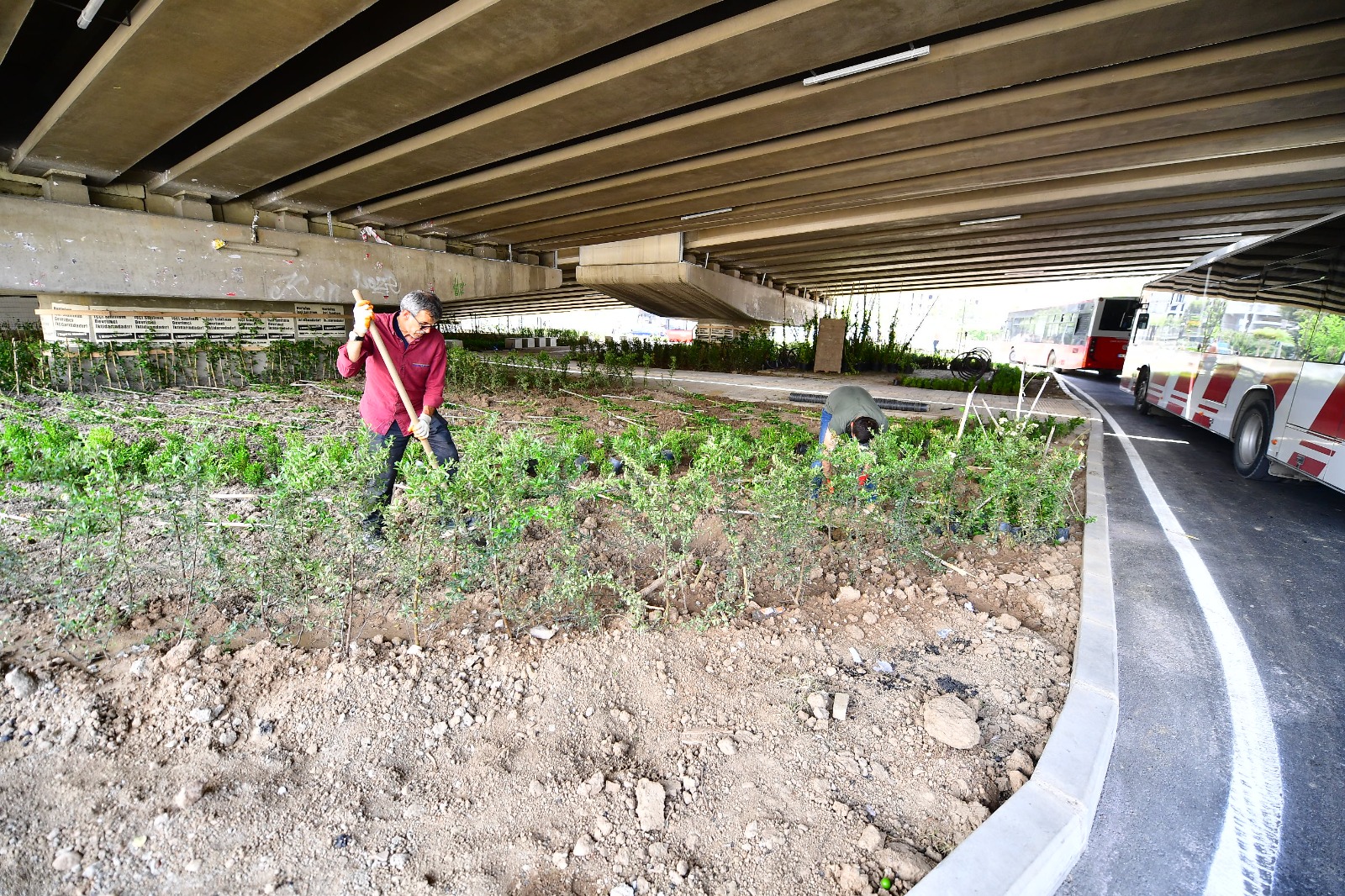 Yeşil alan düzenlemelerinde hava kirliliğini azaltmak amacıyla az bakım gerektiren, karbon tutuculuğu yüksek bitki türleri kullanıldı. Otobüs durakları ve otobüs aktarma merkezi İzmir Büyükşehir Belediyesi’nin Doğayla Uyumlu Yaşam Stratejisi doğrultusunda sürdürülebilir, doğa esaslı çözümlerle düzenlendi. İklim krizine karşı kenti dirençli hale getirmek için otobüs duraklarında Yeşil Durak uygulaması yapıldı. Durakların arkasına yeşil cepler yapıldı ve bu ceplere ağaçlar dikilerek gölge alanlar oluşturuldu. Otobüs aktarma merkezi yeşil alanları, dinlenme ve bekleme alanları ile kentlinin yaşam kalitesini yükseltecek şekilde düzenlendi.