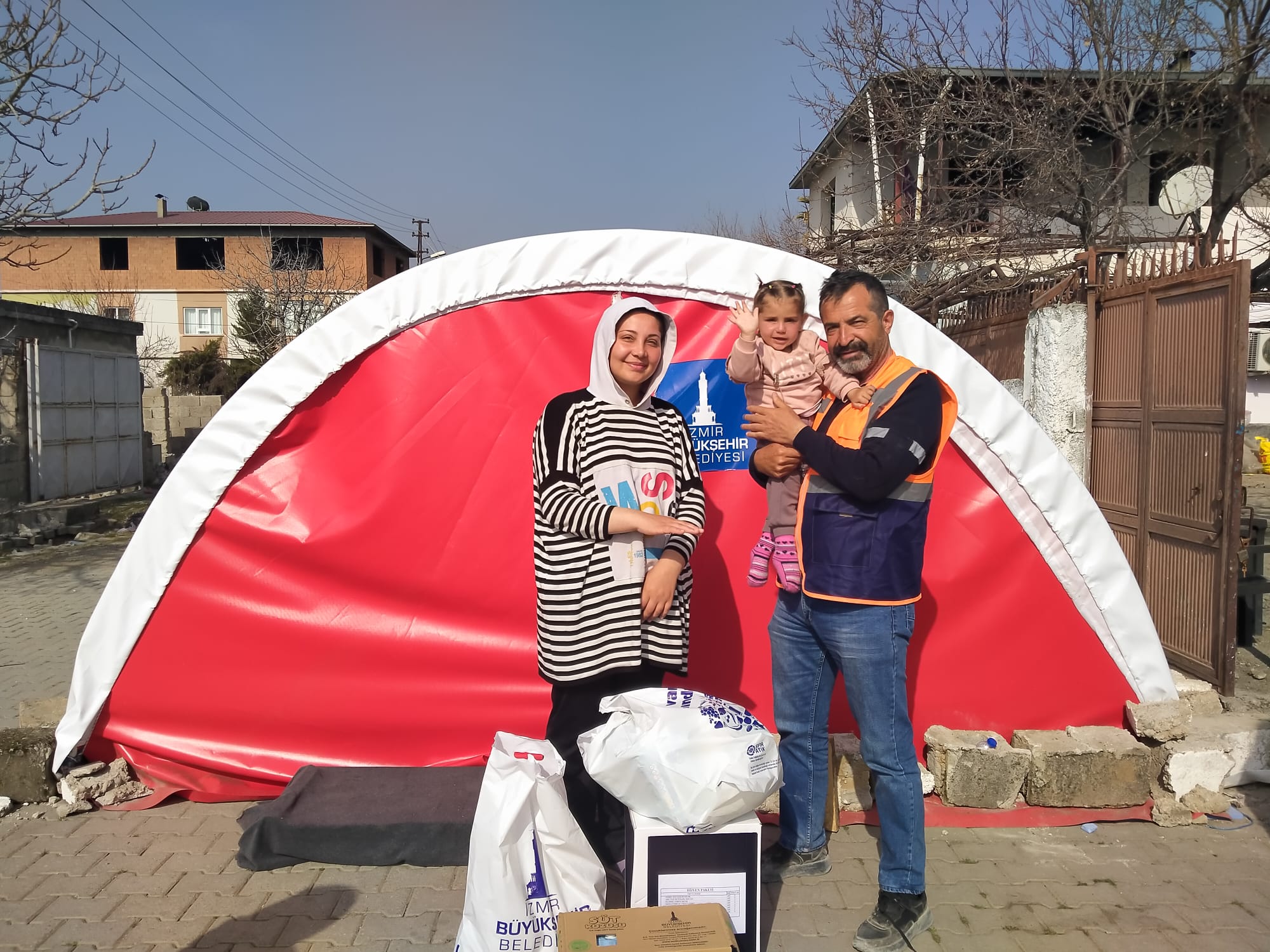 Kahramanmaraş merkezli, 11 ili etkileyen deprem felaketinin ilk gününden itibaren bölge halkına destek olan İzmir Büyükşehir Belediyesi, çadır kentlerdeki ailelere de kucak açıyor. Kahramanmaraş’ın Türkoğlu ilçesindeki evleri depremde hasar görünce Büyükşehir Belediyesi’nin çadır kentine gelen Yıldırım ailesi yaşanan felaketin ortasında yeni umutlara yelken açtı. İzmir Büyükşehir Belediye Başkanı Tunç Soyer’in devreye girmesiyle 2 buçuk yaşındaki Serebral Palsi hastası Öykü Özge Yıldırım, yoğun tedavi ve bakım süreci için İzmir’e getirildi.