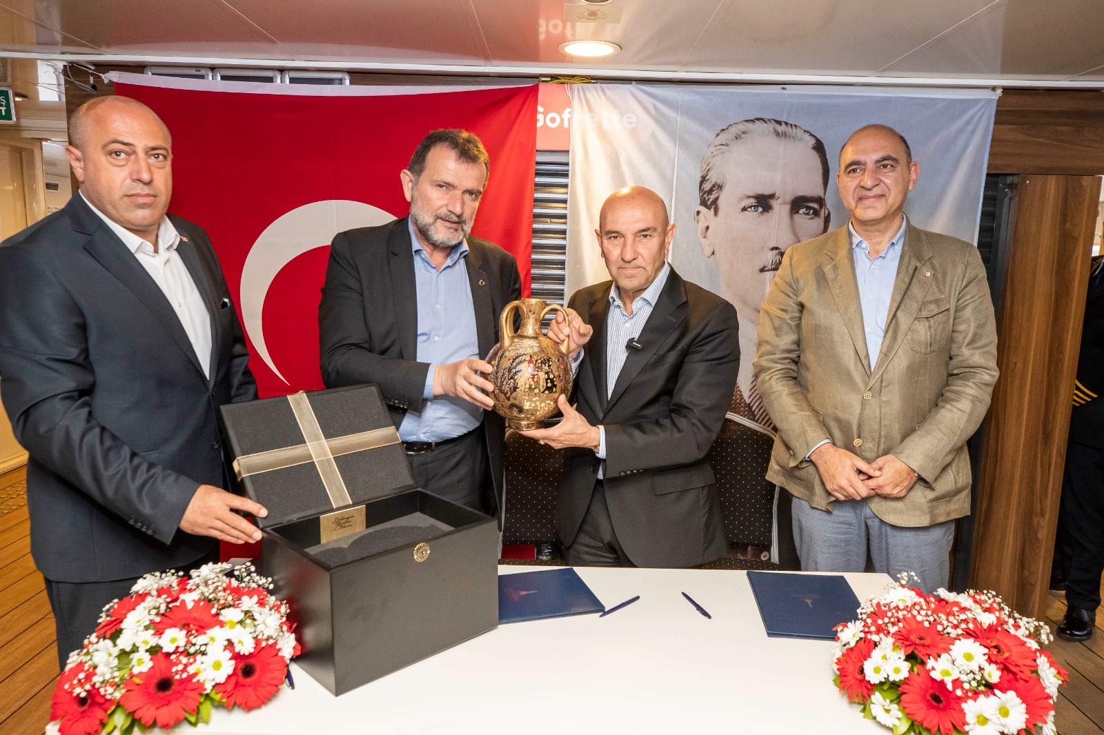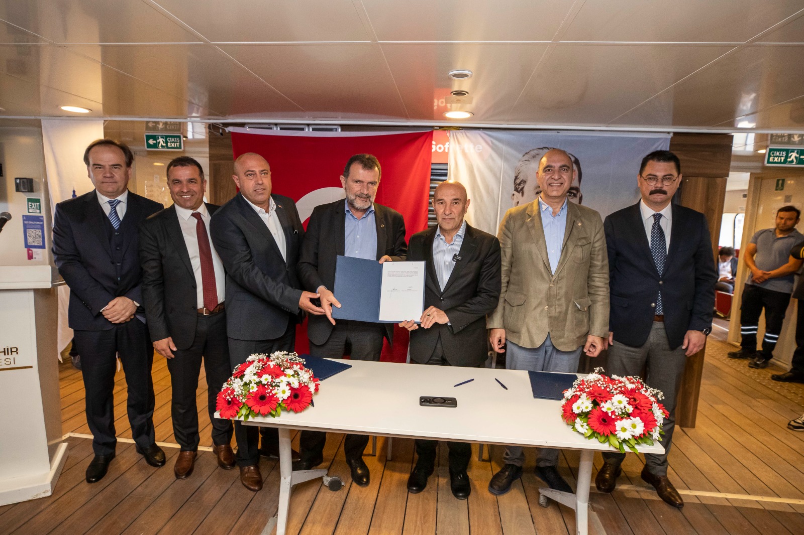 İzmir Büyükşehir Belediyesi ile İZDENİZ şirketi personelinin örgütlü olduğu Türkiye Denizciler Sendikası arasında süren 11’nci dönem toplu iş sözleşmesi (TİS) görüşmelerinde uzlaşma sağlandı. 427 personeli kapsayan TİS için Konak Vapur İskelesi’ndeki İhsan Alyanak yolcu vapurunda düzenlenen imza törenine, İzmir Büyükşehir Belediye Başkanı Tunç Soyer, Türkiye Denizciler Sendikası Başkanı İrfan Mete, Türk-İş Ege Bölge Temsilcisi Hayrettin Çakmak, İZDENİZ Genel Müdür Vekili Ümit Yilmaz, İZDENİZ Yönetim Kurulu Başkanı Osman Hakan Erşen ile personel ve yolcular katıldı.