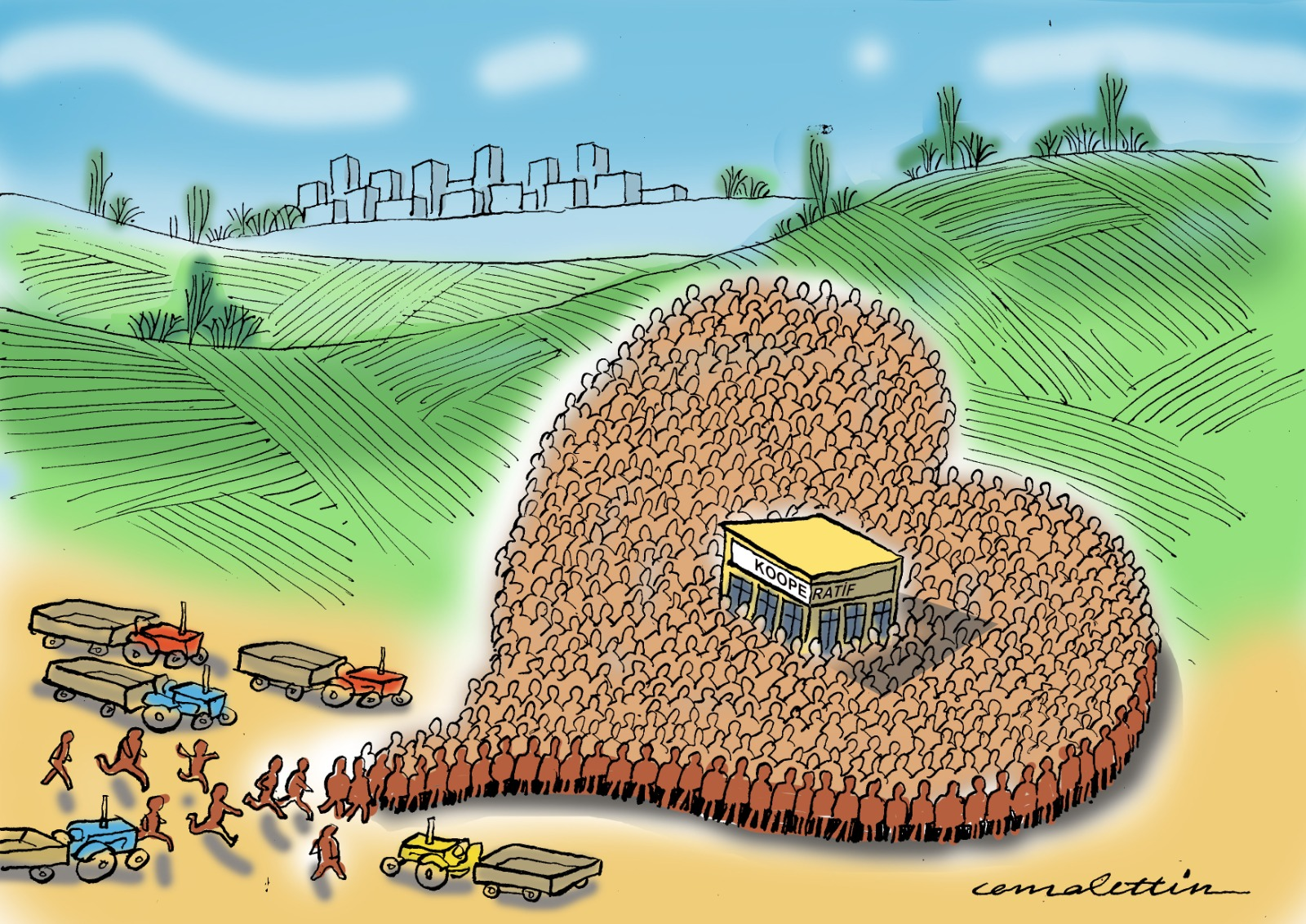İzmir Büyükşehir Belediye Başkanı Tunç Soyer’in “Başka Bir Tarım Mümkün” anlayışıyla bu yıl ikinci kez düzenlenen ulusal karikatür yarışmasında dereceye giren eserler belirlendi. “Köylünün Örgütlü Gücü Kooperatif” temasıyla yapılan yarışmada birinciliği Halit Kurtulmuş Aytoslu, ikinciliği Mehmet Selçuk, üçüncülüğü Ahmet Öztürklevent kazandı.