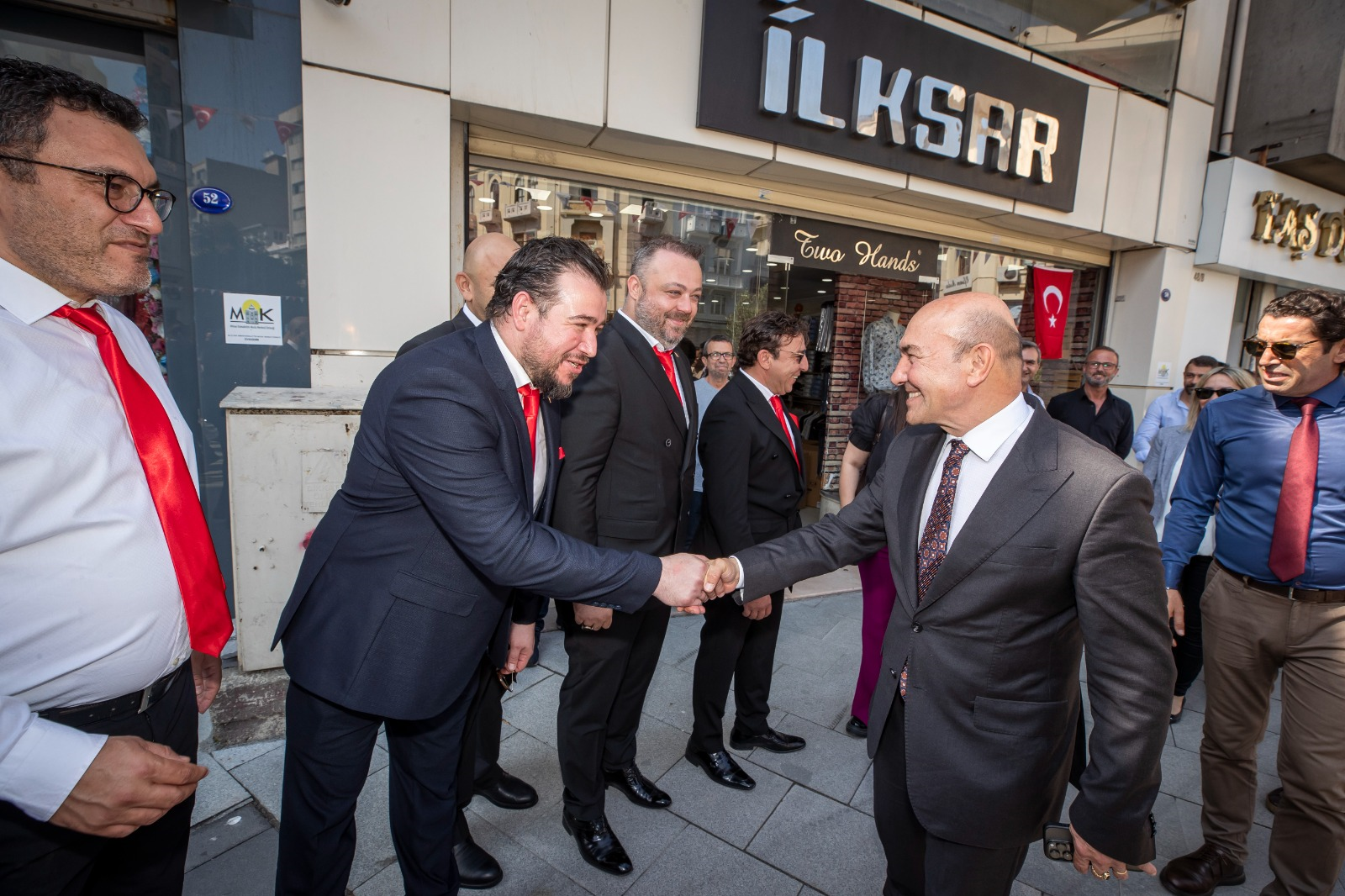 Konak Belediye Başkanı Abdül Batur ile sonuna kadar esnafın yanında duracaklarını ifade eden Başkan Tunç Soyer, “Mimar Kemalettin Moda Merkezi’ni dünya ile buluşturmak için fuarcılık anlamında yapacağımız işler var. İZFAŞ bu konuda çalışacak. Bu mekanı ve bölgeyi iyileştirmek için büyük bir heyecan ve heves duyuyoruz. Mimar Kemalettin Moda Merkezi’nin İzmir’in önünü açacak bir lokomotif haline gelmesi için her şeyi yapmaya hazırız” diye konuştu.