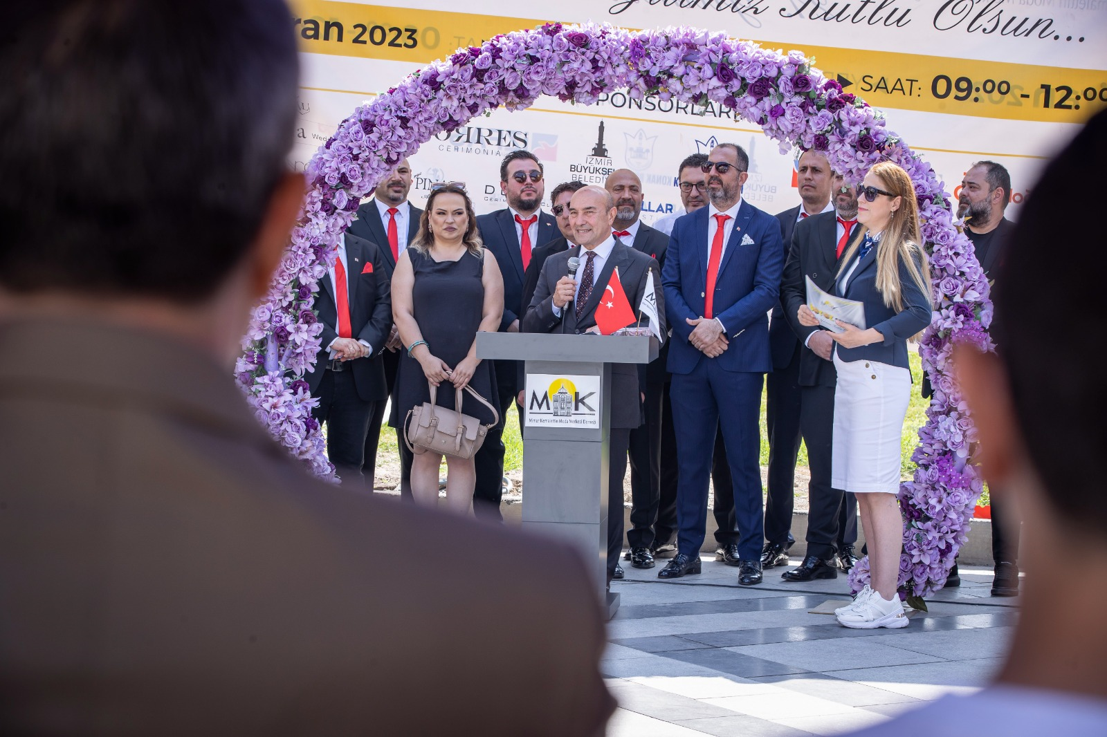 İzmir’de Mimar Kemalettin Moda Merkezi Derneği’nin 21. kuruluş yıl dönümü nedeniyle boyoz şenliği düzenlendi. Şenliğe İzmir Büyükşehir Belediye Başkanı Tunç Soyer ile Konak Belediye Başkanı Abdül Batur da katıldı. Derneğin kuruluş yıl dönümü nedeniyle düzenlenen şenlikte, katılımcılara İzmir’in sevilen lezzetlerinden boyoz ikram edildi. İzmir Büyükşehir Belediyesi’nin de destek verdiği şenlikte konuşan Başkan Tunç Soyer, bu buluşmanın herkesin moralini yükselten, yüreğine ferahlık getiren bir buluşma olduğunu söyledi. Soyer, “Mimar Kemalettin dünya markası olmaya aday. Ve çok daha fazlasını başarmaya aday” dedi.