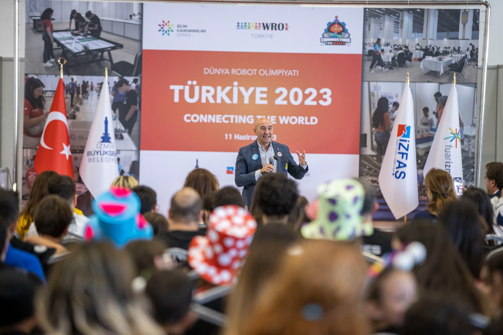 İzmir Büyükşehir Belediyesi ve Bilim Kahramanları Derneği işbirliğiyle Fuar İzmir’de düzenlenen Dünya Robot Olimpiyatı Türkiye 2023’te kazanan takımlara ödülleri verildi. İzmir Büyükşehir Belediye Başkanı Tunç Soyer, gelecek yıl Kasım ayında Dünya Robot Olimpiyatı (World Robot Olympiad-WRO) Uluslararası Finali’ne İzmir’in ev sahipliği yapacağını söyleyerek “2024’te dünyada varlığınızı göstermek için çok büyük bir fırsatı hep beraber burada yaratıyor olacağız” dedi.