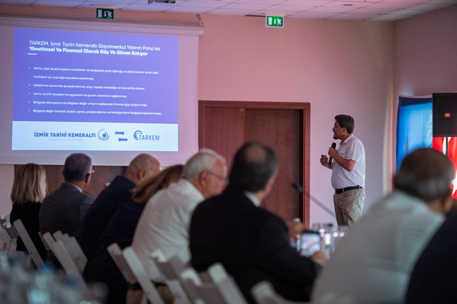 TARKEM Genel Müdürü Sergenç İneler de toplantıda sunum yaptı. Kemeraltı'nın gelişmesi için bu şirketi işin içine dahil ettiklerini belirten Sergenç İneler, “Tekil yapı ölçeğinde toplamda 21 yapıda restorasyon çalışmaları yapılacak. 21 yapıdan ikisinin restorasyonu yapıldı. 9'unun restorasyonu devam ediyor. İki yıl içerisinde bu 9 yapıdan 5'i bitmiş olacak. 21 yapı alanı değiştirmeye haiz, tekil yapı ölçeğindeki en önemli projeler. Burası UNESCO Dünya Mirası Geçici Listesi'ne girdi. Burada restorasyon arayışı ve finans ihtiyacı daha da arttı. Kemeraltı'na yatırım yapanın da yüzünü gülümsetecek. Yatırım yapana da para kazandıracak. Bunu yaparken bölgedeki esnafa, zanaatkara, hijyenik, temiz ve güvenli ve yüksek kalitede hizmet sunacak” dedi.