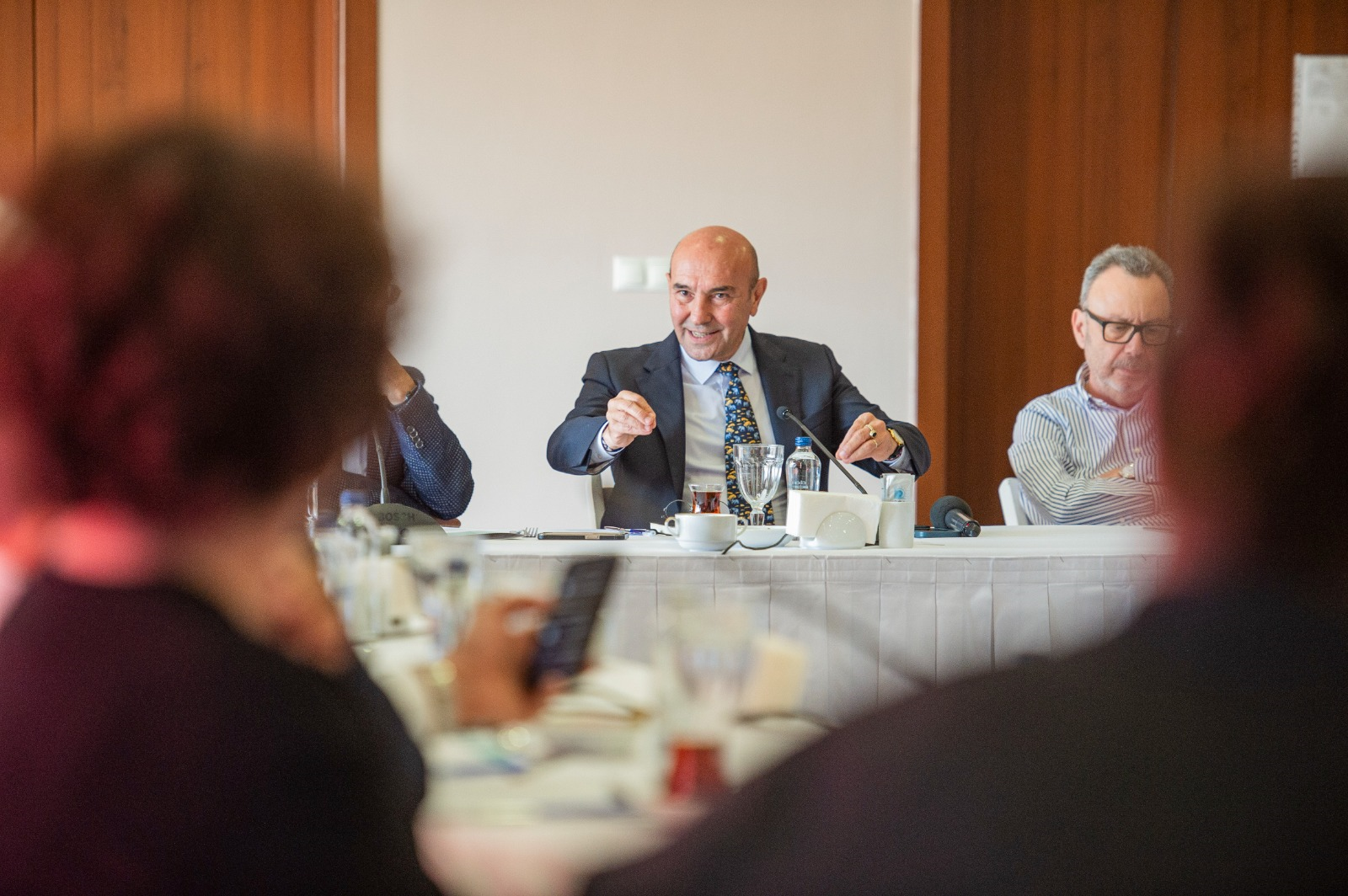 Sokak Sağlıklaştırılması için 250 milyon lira civarında bir bütçe ayırdıklarını ancak tüm bunların bölgenin kent açısından kaldıraç görevini üstlenmeye yetmediğini ifade eden Başkan Tunç Soyer, “Tam orada büyük bir finansman eksikliği olduğunu belirledik. TARKEM de bu tespiti yaparak yola çıktı. Re-Pie Türkiye'deki mevcut bankalardan sonra en yüksek hacme sahip yatırım ortaklığı şirketi. Kemeraltı'na girmeye karar verdiler. Bizim için çok heyecan verici bir başlangıç. Eğer Re-Pie, TARKEM, Büyükşehir Belediyesi, diğer kurumlar gövdelerini bu işin altına koymazlarsa bu boş bir heves olarak kalır. Yürümez. Bu hikayenin yürümesi için her şey var. Ama yetmiyor. Bu hikayeye İzmir'in bütün dinamikleri sahip çıkmazsa, İzmir bütünü ile bu işi sahiplenmezse, bütün bunlar daha uzun zamanlara yayılır. Tekrar başa dönülür. Sizler İEKKK olarak çok kıymetlisiniz. Bu hikayeye en çok sahip çıkacak olan sizlersiniz” dedi.