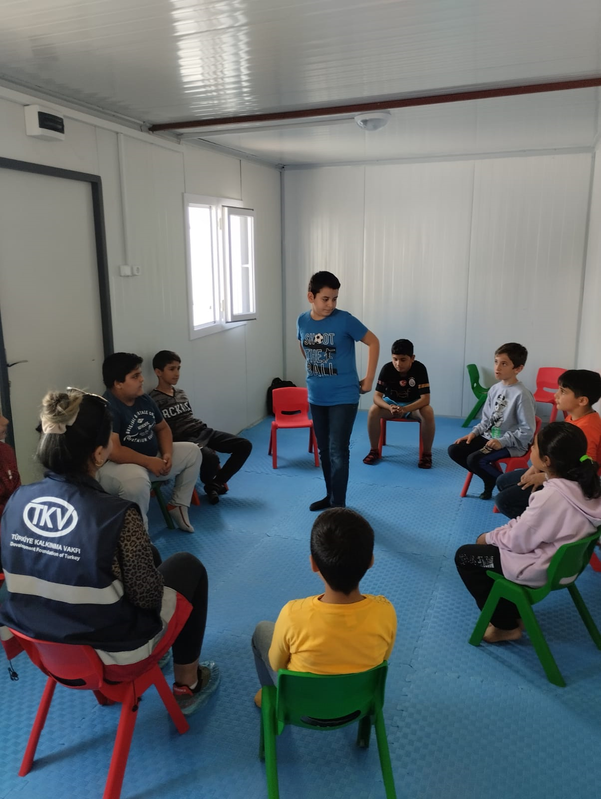 Depremin yaralarını sarmak için İzmir Büyükşehir Belediyesi’nin Adıyaman’da kurduğu yaklaşık 700 kişilik konteyner kentte yaşam devam ediyor. 165 konteynerin bulunduğu 15 bin metrekarelik alanda çocuklar için park, sağlık birimi, kütüphane, sosyal tesis ve çamaşırhane bulunuyor. İzmir Büyükşehir Belediyesi, Adıyaman’daki konteyner kentte çocuklara, kadınlara ve ailelere yönelik psiko sosyal destek süreçlerinin daha sağlıklı ve yerelden sürdürülebilir olmasını sağlamak amacıyla “Türkiye Kalkınma Vakfı” ile protokol imzaladı. Vakfın görevlendirdiği psiko sosyal destek ekipleri konteyner kentte çocuk koruma üzerine öncelikli olarak saha taraması yaptı. 0-14 yaş arası 163 çocuk, 15-18 yaş arası 34 gence ulaşılarak, ailelerin ve çocukların ihtiyaçları tespit edildi. Elde edilen verilerle riskli grupların vaka yönetimi gerçekleştirilerek hak ve hizmetlere erişimi sağlandı. Kadınlara ve gençlere yönelik farkındalık artırıcı oturumlar yapılıyor.