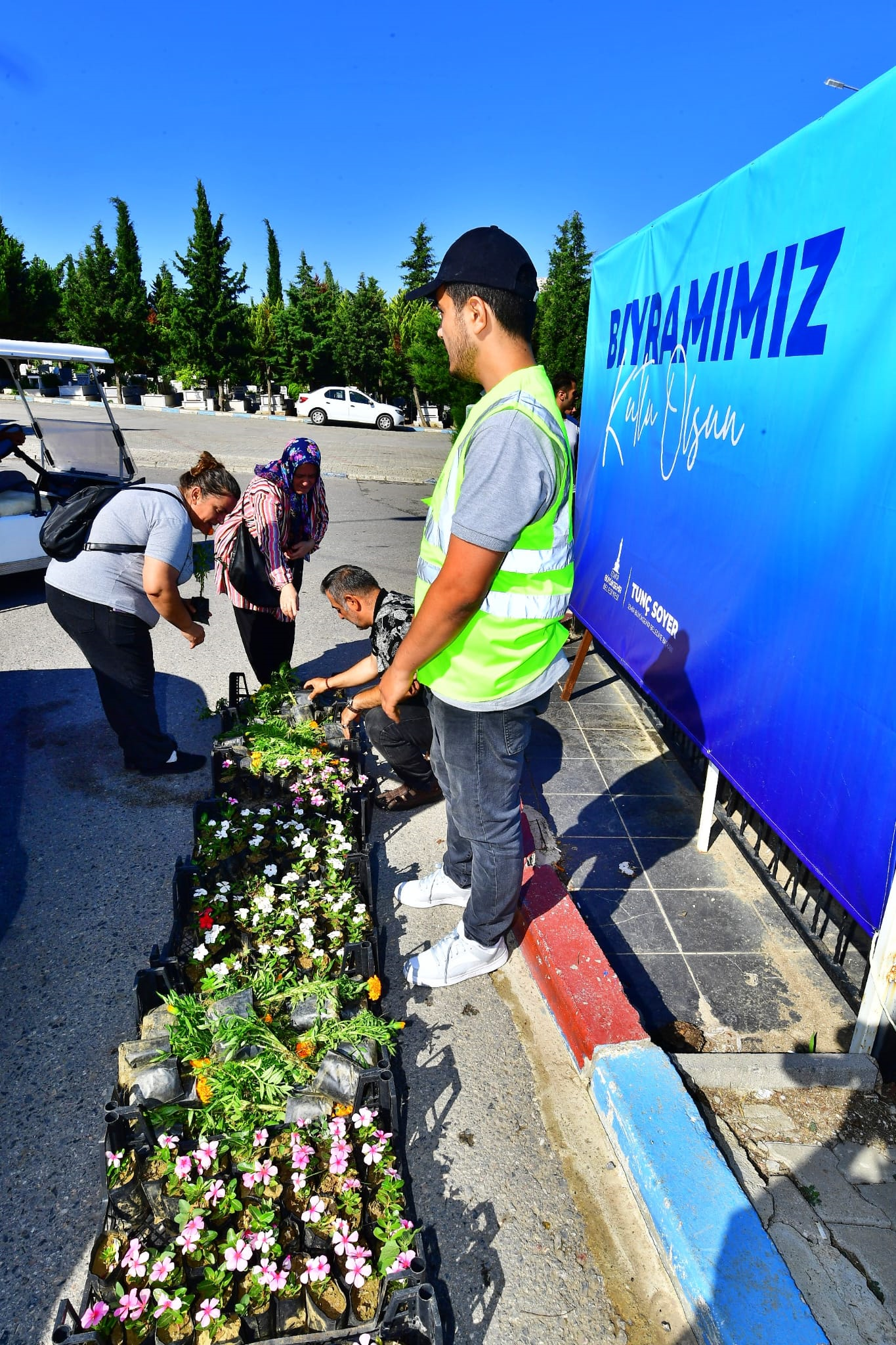 İzmir Büyükşehir Belediyesi, Kurban Bayramı öncesinde mezarlıklarda yakınlarını ziyaret edenlere, mezarlara dikmeleri için çiçek dağıttı. Büyükşehir Belediyesi’nin bu hizmetinden çok memnun olduklarını söyleyen İzmirliler bunun bir gelenek haline gelmesini istediklerini dile getirdi.