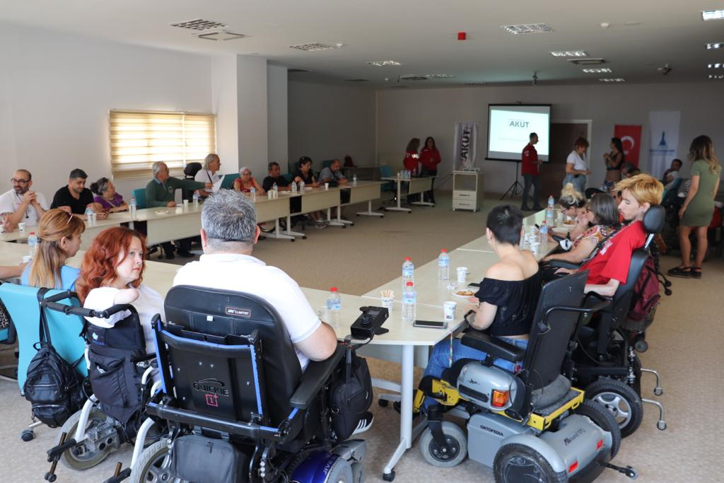 İzmir Büyükşehir Belediyesi Sosyal Projeler Dairesi Başkanlığına bağlı Engelsizmir Şube Müdürlüğü İRAP (İl Risk Azaltma Planı) kapsamında olası afetlerle baş edebilme kapasitesinin artırılması için “Afet Bilinci ve Engelli Farkındalığı” eğitimlerine başladı.
