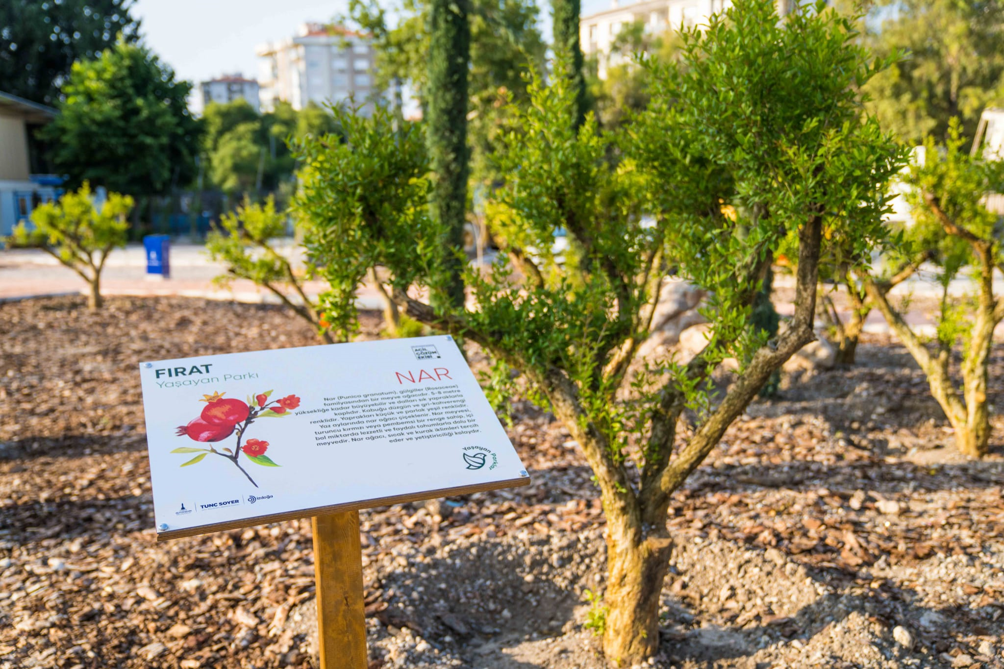 Parkta yapılan bitkilendirme çalışmaları, ömrünün bir kısmını İzmir’de geçiren ve İzmir’in en büyük yeşil alanı Kültürpark’ın ağaçlandırılmasına büyük emek veren Cevat Şakir Kabağaç’a (Halikarnas Balıkçısı) ithaf edildi. Parkın pek çok yerinde Cevat Şakir’in uyguladığı bitkilendirme yöntemlerinden ilham alındı. Fırat Fidanlığı’nın Yaşayan Park’a dönüştürülmesi için yapılan ağaçlandırma çalışmalarında İzmir’in iklim ve doğasına uygun bitkiler kullanıldı. Buca’ya kazandırılan otuz bin metrekarelik parkta palamut meşesi, pırnal meşesi, ıhlamur, çınar, sekoya, servi, Datça hurması, badem, sakız, delice zeytin, erguvan, kekik, karabaş otu, defne, ılgın, dut, süs armutu, nar gibi türlerin yanı sıra hanımeli, manolya, sarı çiçekli yasemin gibi kokulu bitkiler de toprakla buluştu. Parktaki ağaçlar, 3-4 yıl sonra sulamaya ihtiyaç duyulmayacak türlerden seçildi.