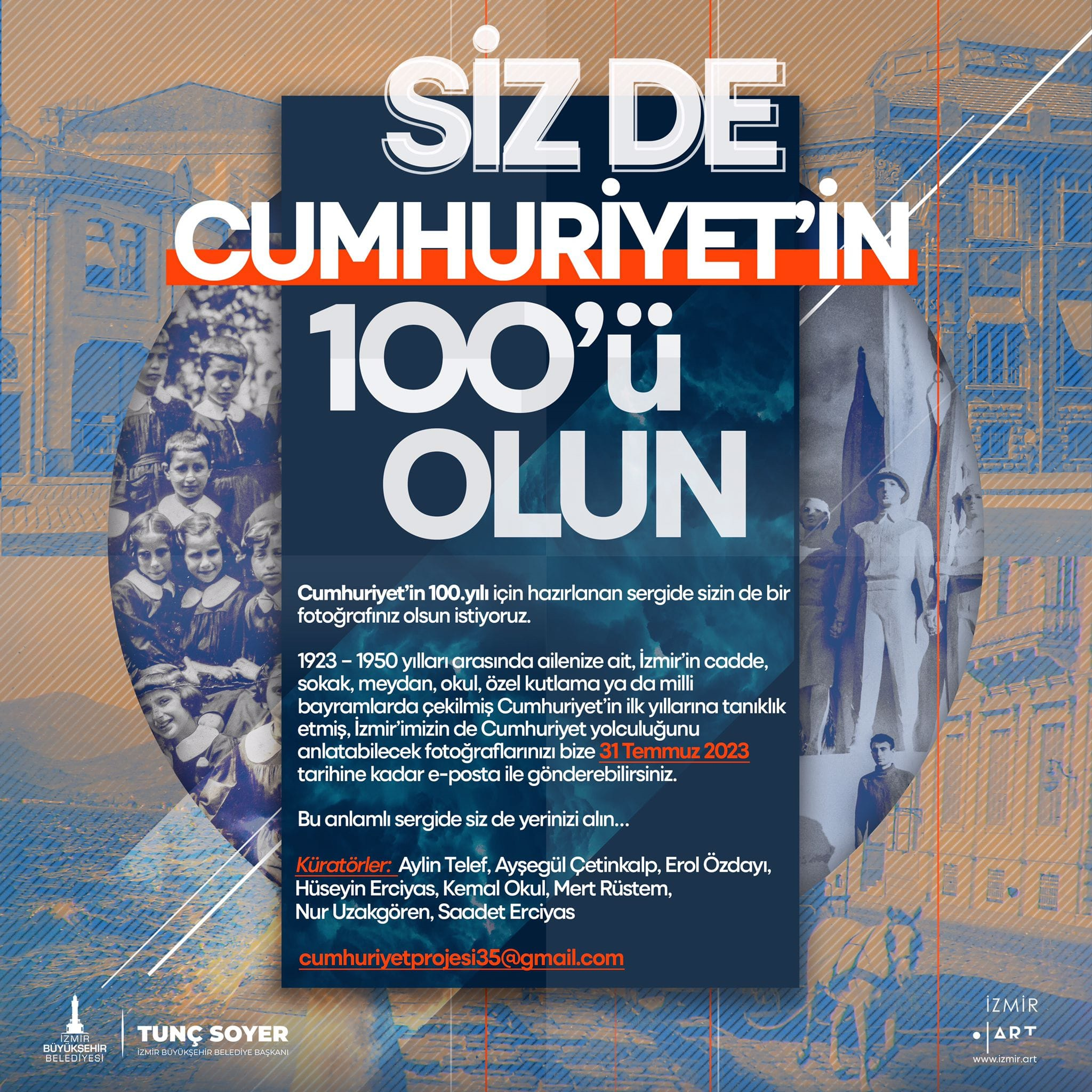 İzmir Büyükşehir Belediyesi, Türkiye Cumhuriyeti’nin yüzüncü kuruluş yıldönümü için Ekim ayında "Cumhuriyetin 100'ü İzmir" sergisine ev sahipliği yapacak. Sergide İzmir’de Cumhuriyet yıllarına tanıklık eden aile fotoğraflarına da yer verilecek. Cumhuriyet yolculuğunu anlatacak fotoğrafların 31 Temmuz’a kadar gönderilmesi gerekiyor.