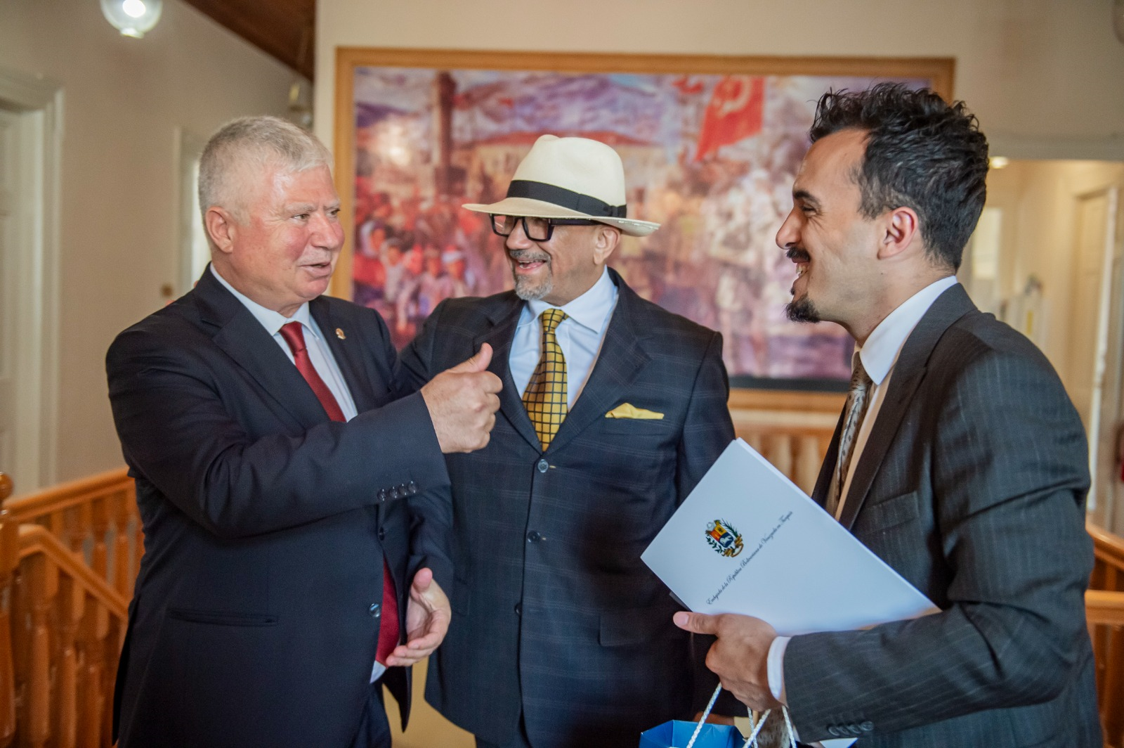 Venezuela Ankara Büyükelçisi Jose Gregorio Bracho Reyes, İzmir Büyükşehir Belediyesi’ni ziyaret etti. İzmir Büyükşehir Belediye Başkan Vekili Mustafa Özuslu, “Venezuela’nın 212. bağımsızlık gününüzü kutluyoruz. Ülkelerimiz arasında tarihsel süreçlere baktığımızda özellikle bağımsızlık ve antiemperyalist mücadelede çok özdeş noktalar görebiliyoruz. Mustafa Kemal Atatürk, mazlum milletlere, dünya uluslarına örnek bir mücadele ile bağımsızlığı kazandı. Francisco de Miranda, ondan çok daha önce Türkiye’yi de içine alan ziyaret programıyla ülkesinin bağımsızlığı için yola çıkmış. Burada da bir benzerlik var. Son görüşmemizde Francisco de Miranda’nın heykelinin yapılmasını konuşmuştuk. Karşıyaka’da bir park içinde kaidenin üzerine yerleştirilmesi için mutabakat olduğunu biliyorum. Bir diğer konu da Konak metro istasyonunda yapılacak mural çalışması. İki konuda da yürüyen bir süreç var. İki ülke arasındaki ilişkileri güçlendirmek için İzmir’den nasıl bir katkı sunabiliriz, bunun üzerine çalışıyoruz” dedi.