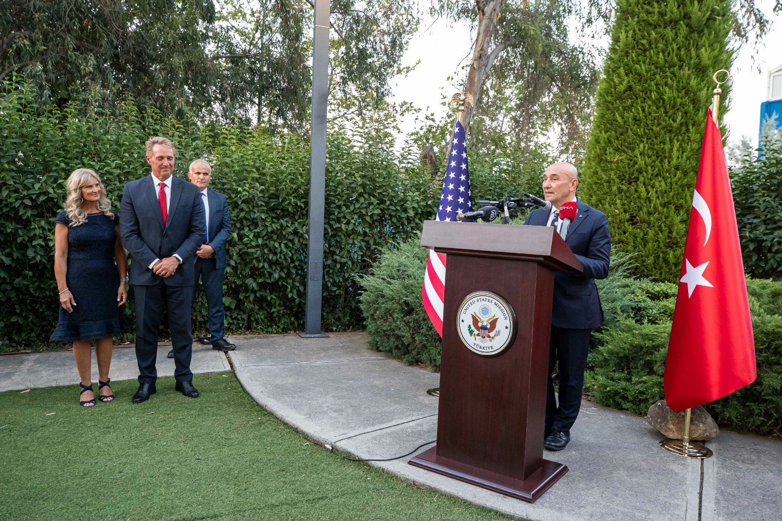 İzmir Büyükşehir Belediye Başkanı Tunç Soyer ABD’nin bağımsızlığının 247’nci yıldönümü nedeniyle düzenlenen resepsiyona katıldı. Gaziemir Ege Serbest Bölgesi Kurucu İşletici AŞ (ESBAŞ) sponsorluğunda, Uzay Kampı Türkiye bahçesinde verilen resepsiyon, Türk ve ABD milli marşlarının okunmasıyla başladı. Resepsiyona İzmir Büyükşehir Belediye Başkanı Tunç Soyer, ABD Büyükelçisi Jerffry Flake ve eşi Cheryl Flake, Ege Ordu Komutanı Korgeneral Kemal Yeni, ESBAŞ Yönetim Kurulu Başkanı Mary Tuncer, ESBAŞ CEO’su Dr. Faruk Güler, Gaziemir Belediye Başkanı Halil Arda ile sivil ve askeri yetkililerden oluşan davetliler katıldı.