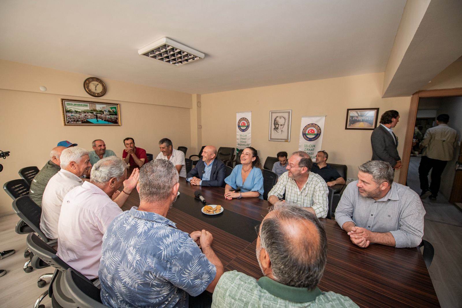 Başkan Soyer, ilçedeki tarım ve ticaret örgütlerinin temsilcileriyle de bir araya geldi.