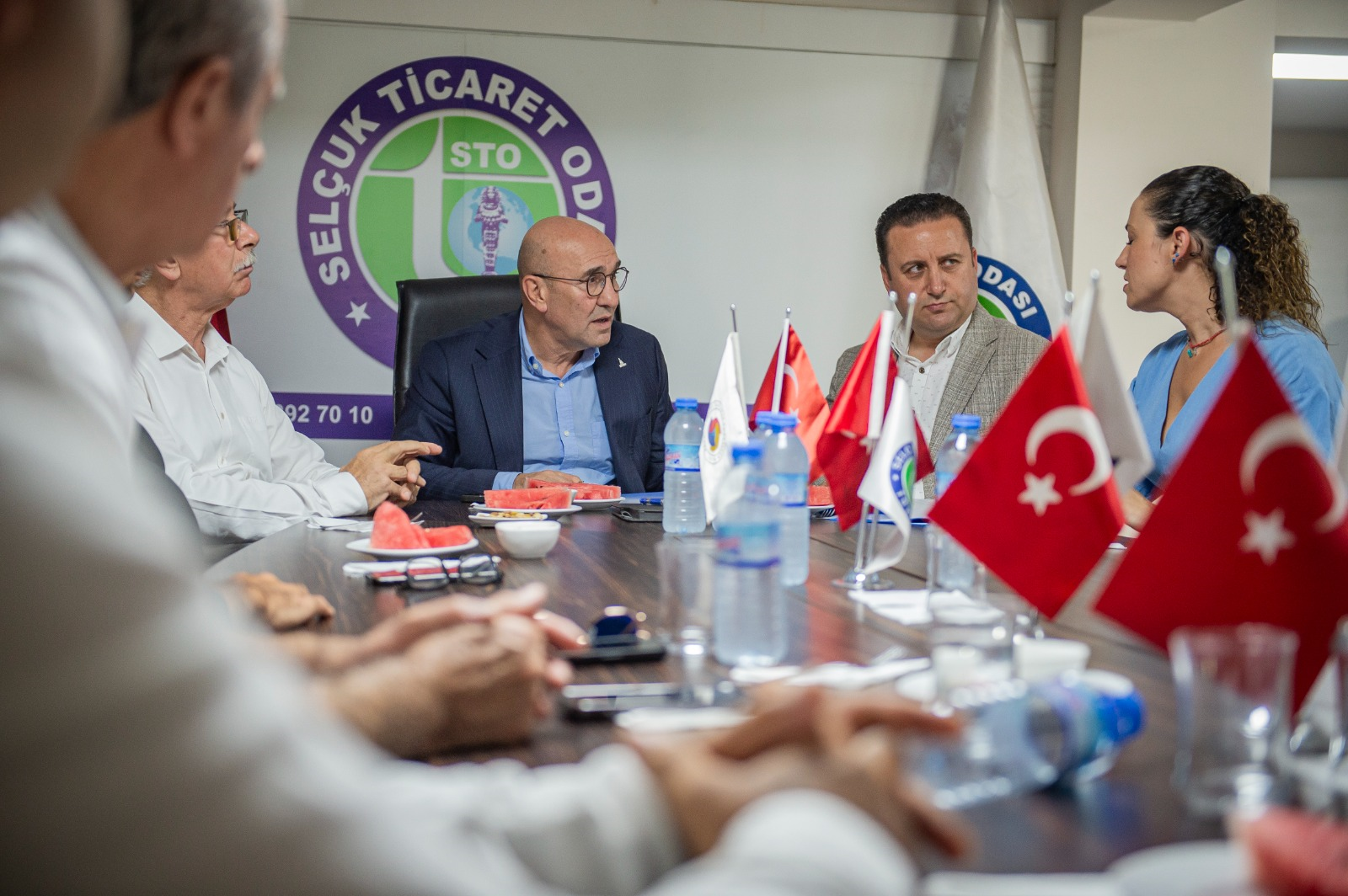 İzmir Büyükşehir Belediye Başkanı Tunç Soyer, Selçuk’ta sürdürülen proje ve çalışmaları yerinde görmek amacıyla çıktığı inceleme turu kapsamında önce Selçuk Belediye Başkanı Filiz Ceritoğlu Sengel’i makamında ziyaret etti, tarım ve ticaret örgütlerinin temsilcileriyle buluştu ve muhtarların taleplerini dinledi.