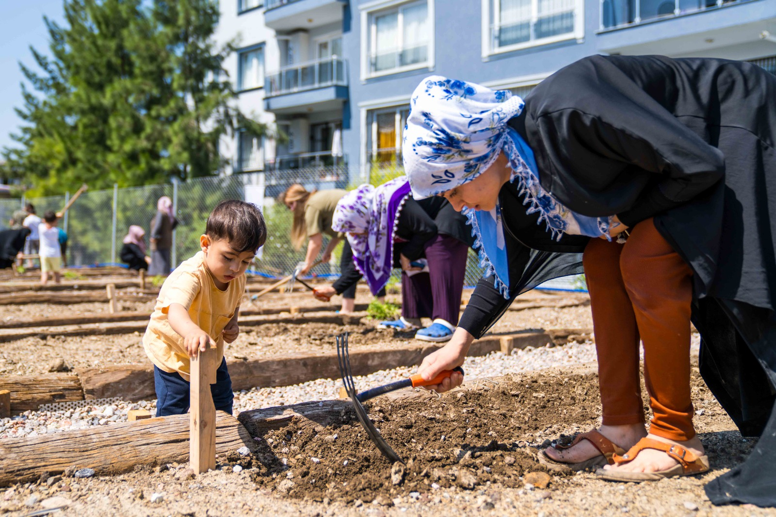 Mahalleli üretim yapıyor, çocuklar toprakla tanışıyor