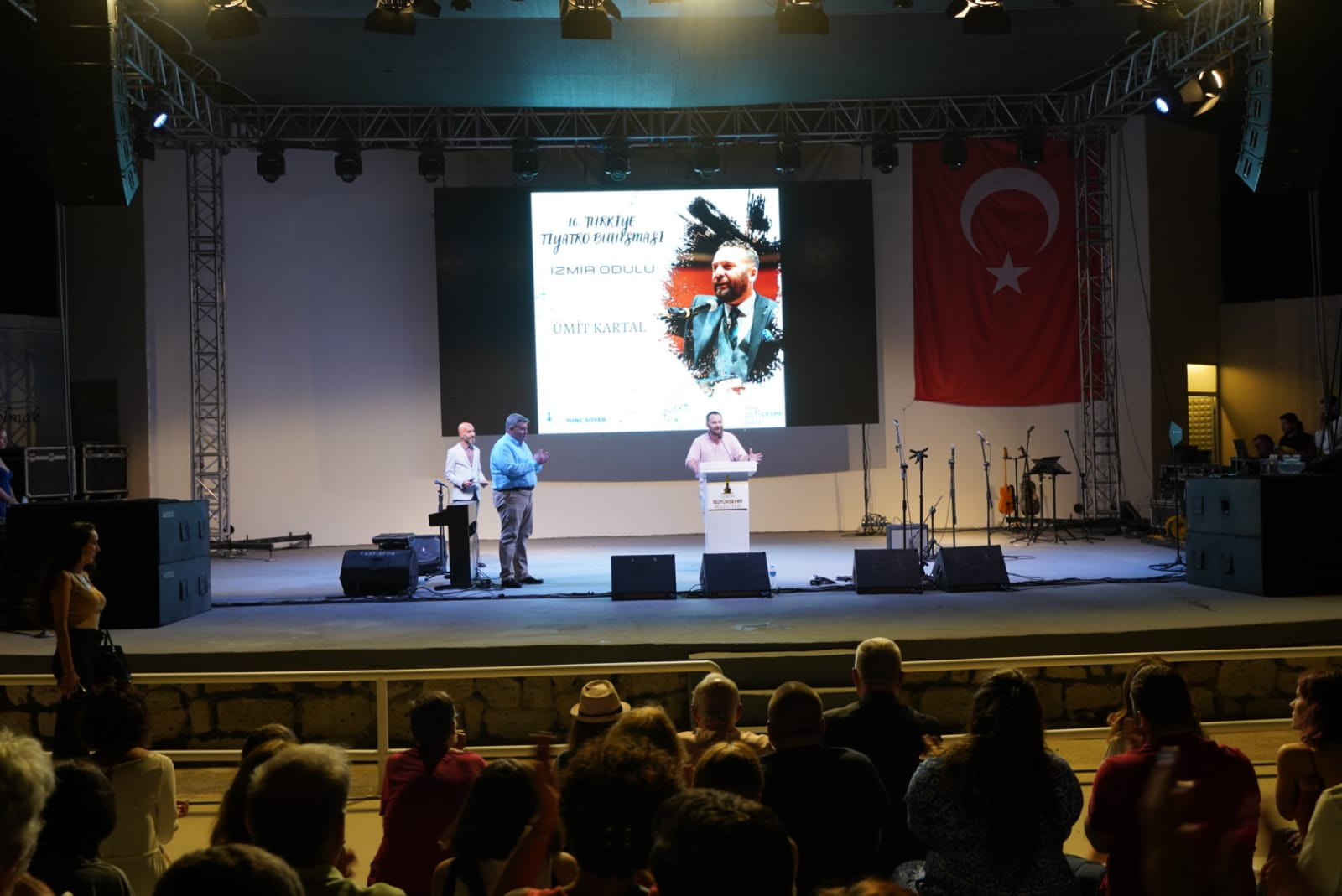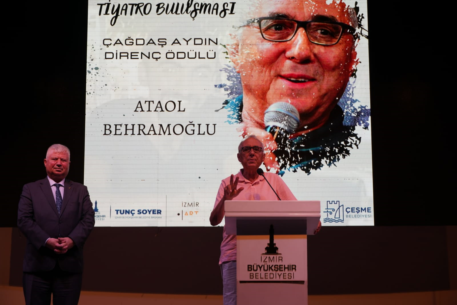 İzmir Büyükşehir Belediye Başkanı Tunç Soyer, Kahramanmaraş merkezli ve 11 ili etkileyen 6 Şubat depremlerinde göstermiş olduğu dayanışma nedeniyle 16. Türkiye Tiyatro Buluşması’nda ödül aldı. Alaçatı Açıkhava Tiyatrosu’nda düzenlenen açılış ve ödül törenine Başkan Tunç Soyer’i temsilen İzmir Büyükşehir Belediye Başkan Vekili Mustafa Özuslu katıldı.