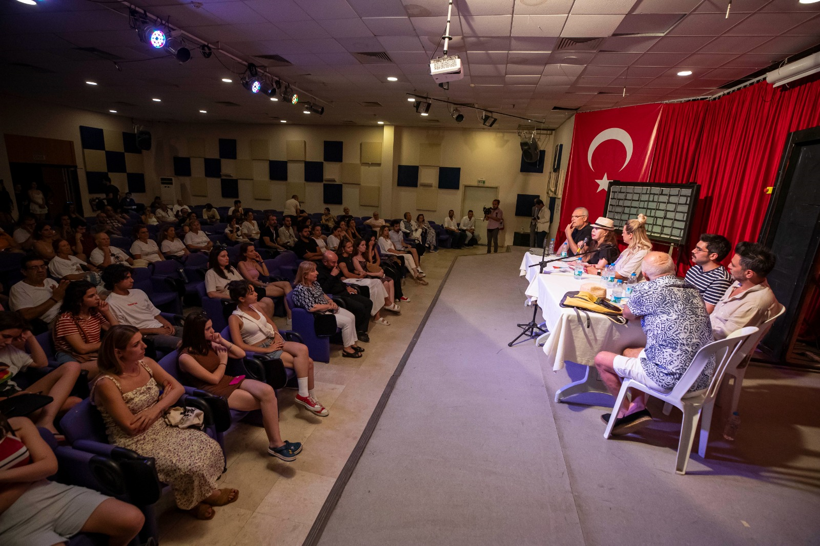 İzmir Büyükşehir Belediye Başkanı Tunç Soyer, Çeşme'deki Çakabey Kültür Merkezi'nde 16'ıncı Türkiye Tiyatro Buluşması kapsamında düzenlenen “Tiyatro Yeniden Kendini Yaratabilir mi?” adlı söyleşiye katıldı. Çeşme Belediye Başkanı Ekrem Oran'ın da dinleyici olarak yer aldığı söyleşide sanatçı Ayşe Emel Mesçi, Levent Üzümcü, Selim Karadana, Çağlar İşgören ve Orhan Aydın konuştu.