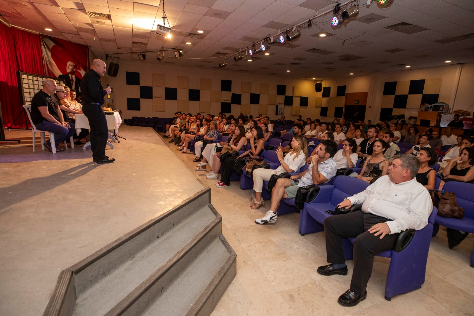 İzmir Büyükşehir Belediye Başkanı Tunç Soyer, sözlerine “Tiyatro kendine, dünyaya ayna tutmaktır” diyerek başladı. Bunun için empati yapmayı bilmek gerektiğini belirten Başkan Soyer, “Aslında empatiyle özgürlük arasında çok kuvvetli bir bağ var. Eğer empati yapmaya başlıyorsanız merak etmeye başlıyorsunuz. Merak ettikçe bilgi edinme ihtiyacı duyuyorsunuz, bilgi edindikçe cesaretiniz artıyor, cesaretiniz arttıkça özgürleşiyorsunuz. Empati yapmak da en çok tiyatrocuların harcı. En iyi empati yapabilen tiyatrocular. O nedenle aslında özgürlüğe en açık olanlar, en cesur olanlar tiyatrocular oluyor” dedi.