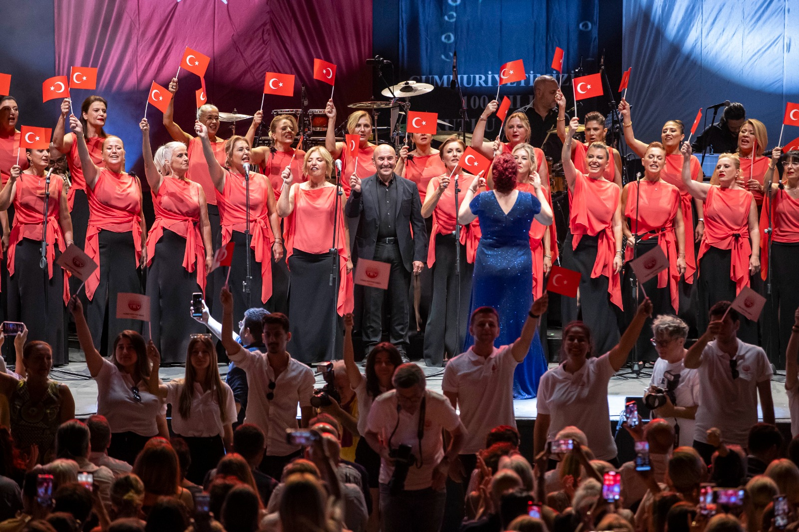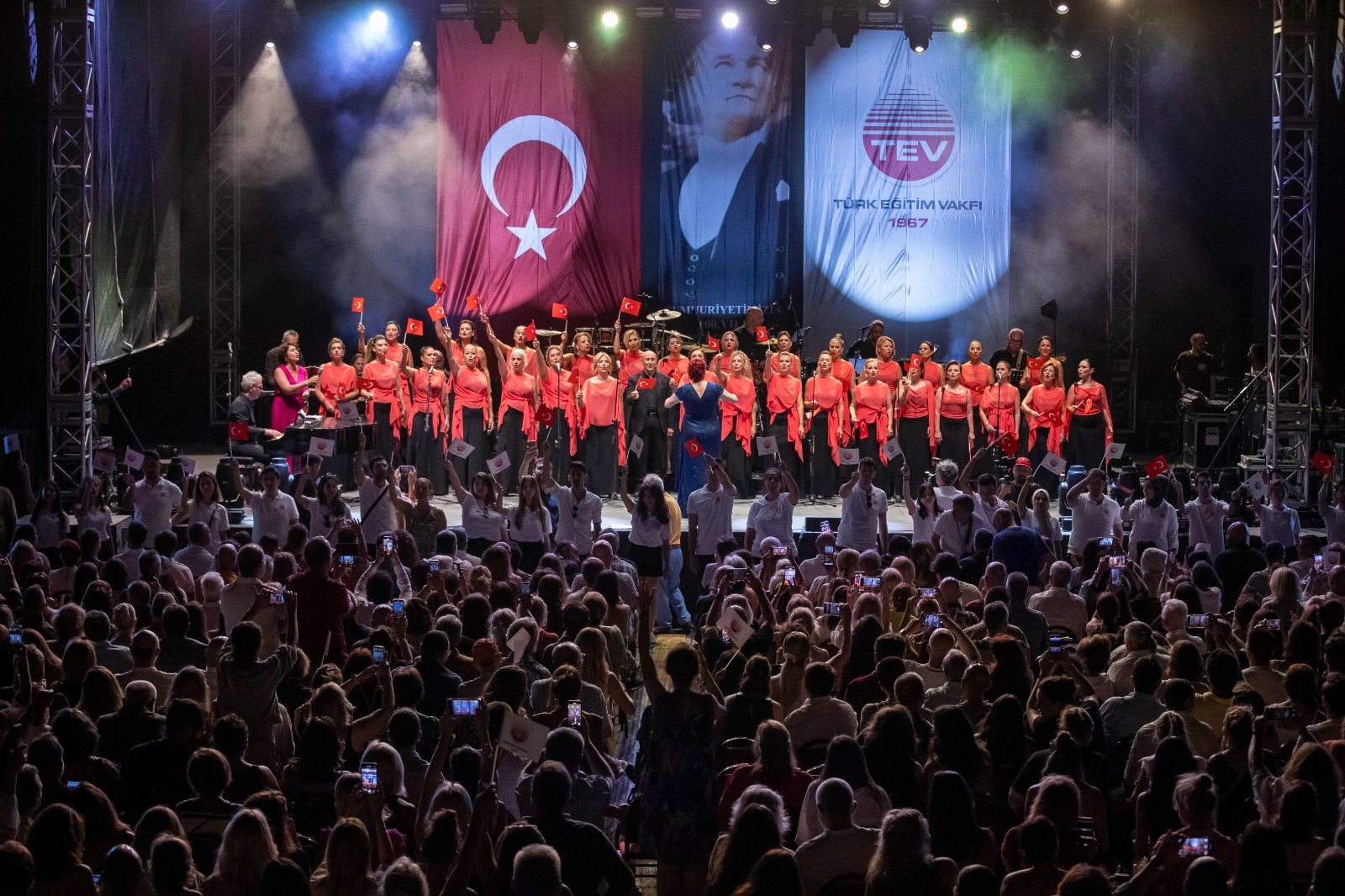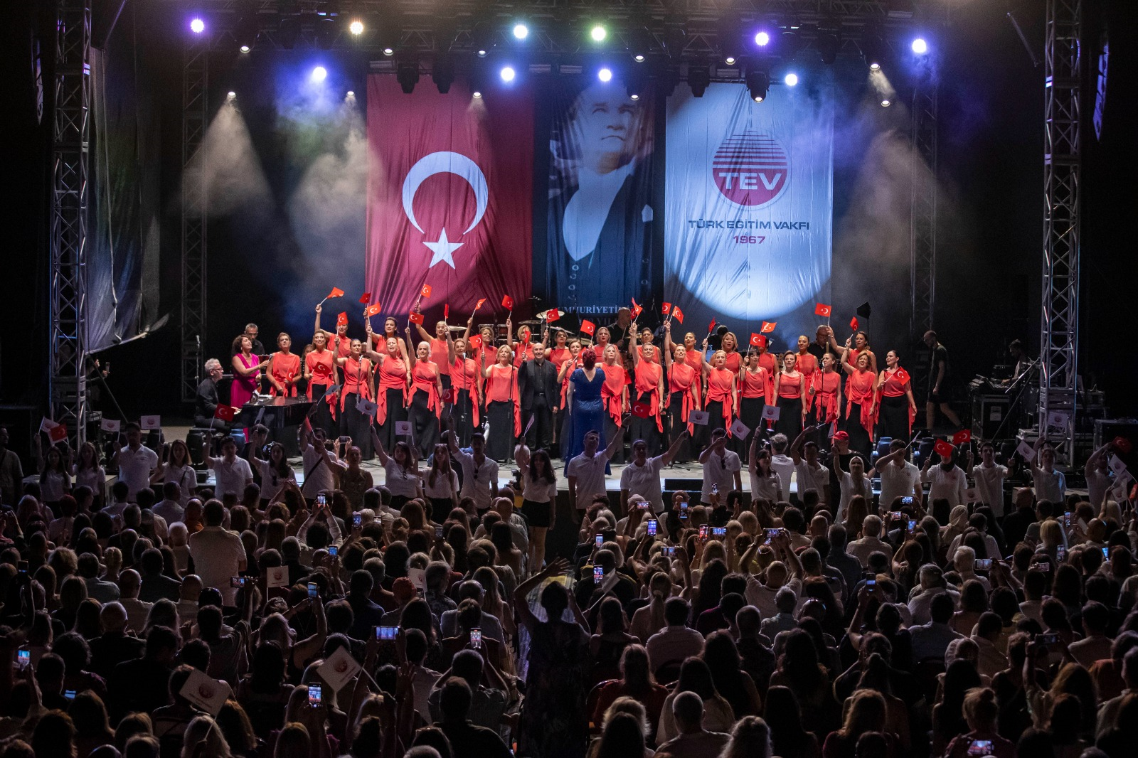 Anlamlı gece TEV Eğitime Destek Korosu'nun sahneye çıkmasıyla başlarken Karsu konseriyle taçlandı. Ayrıca Başkan Tunç Soyer dünya ünlü piyanist Fazıl Say'ın bestelediği 100'üncü Yıl Marşı'nı koroyla birlikte seslendirdi.