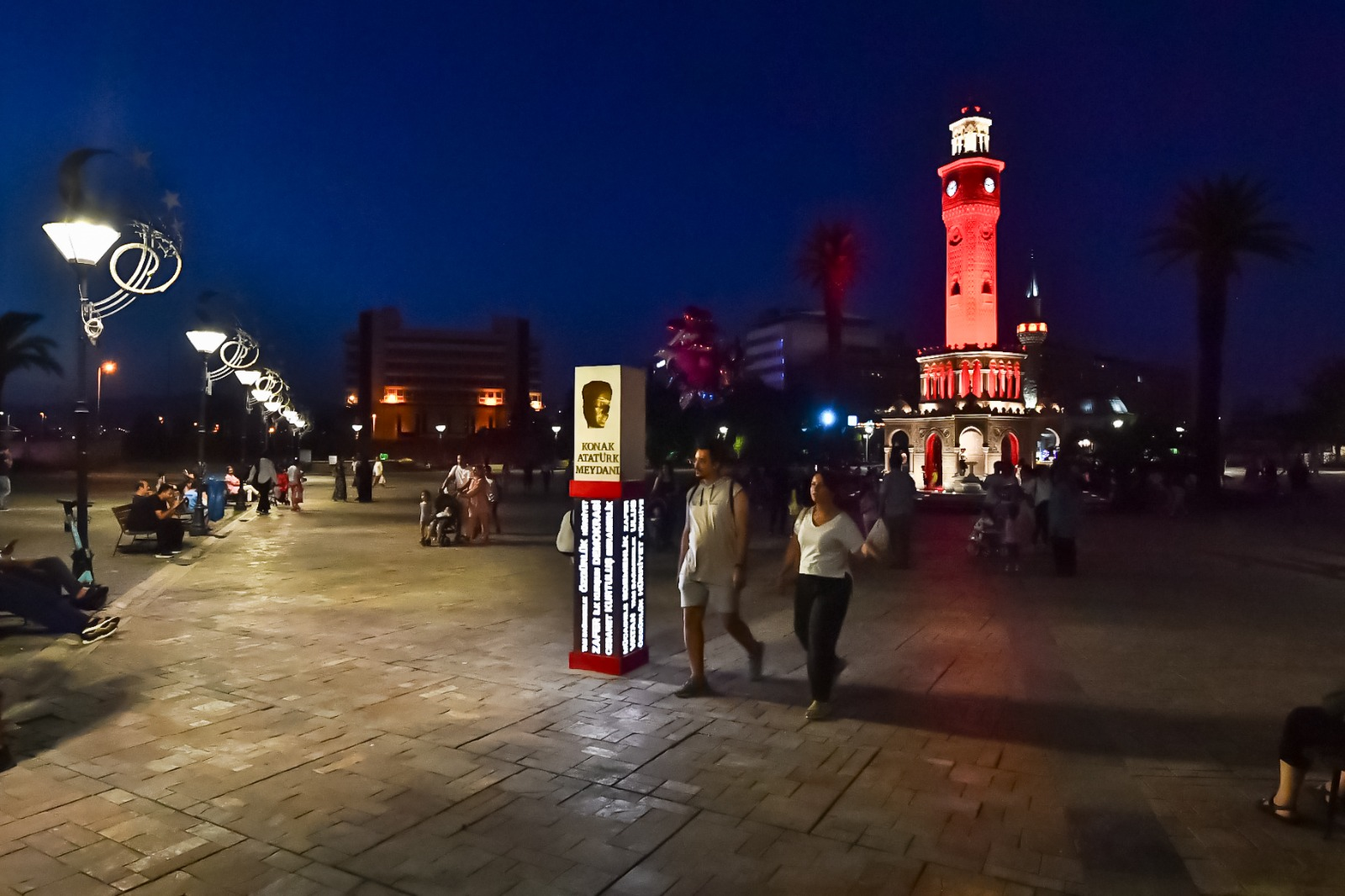 Gençler Foça’da Lozan’ı masaya yatırırken İzmir’in simgesi Saat Kulesi ise Türk Bayrağı’nın renklerine büründü. Lozan Barış Antlaşması’nın 100. yılı şerefine kırmızı beyaz ışıklarla aydınlatılan Saat Kulesi’nde İzmirliler hatıra fotoğrafları çektirdi. İzmir Büyükşehir Belediyesi, Lozan’ın 100. Yılı kutlamaları kapsamında tiyatrodan sergiye, konserden söyleşiye kadar çok sayıda etkinlik düzenleyecek.