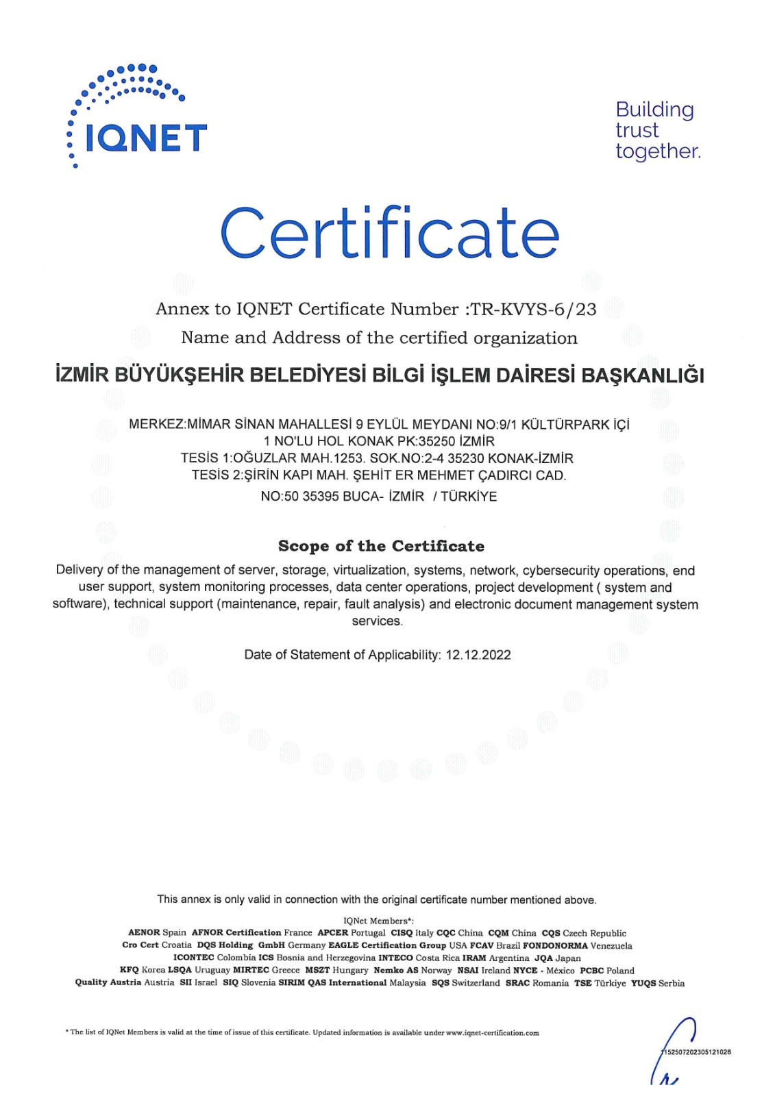 İzmir Büyükşehir Belediyesi ISO 27701 standardına sahip ilk “Büyükşehir” oldu