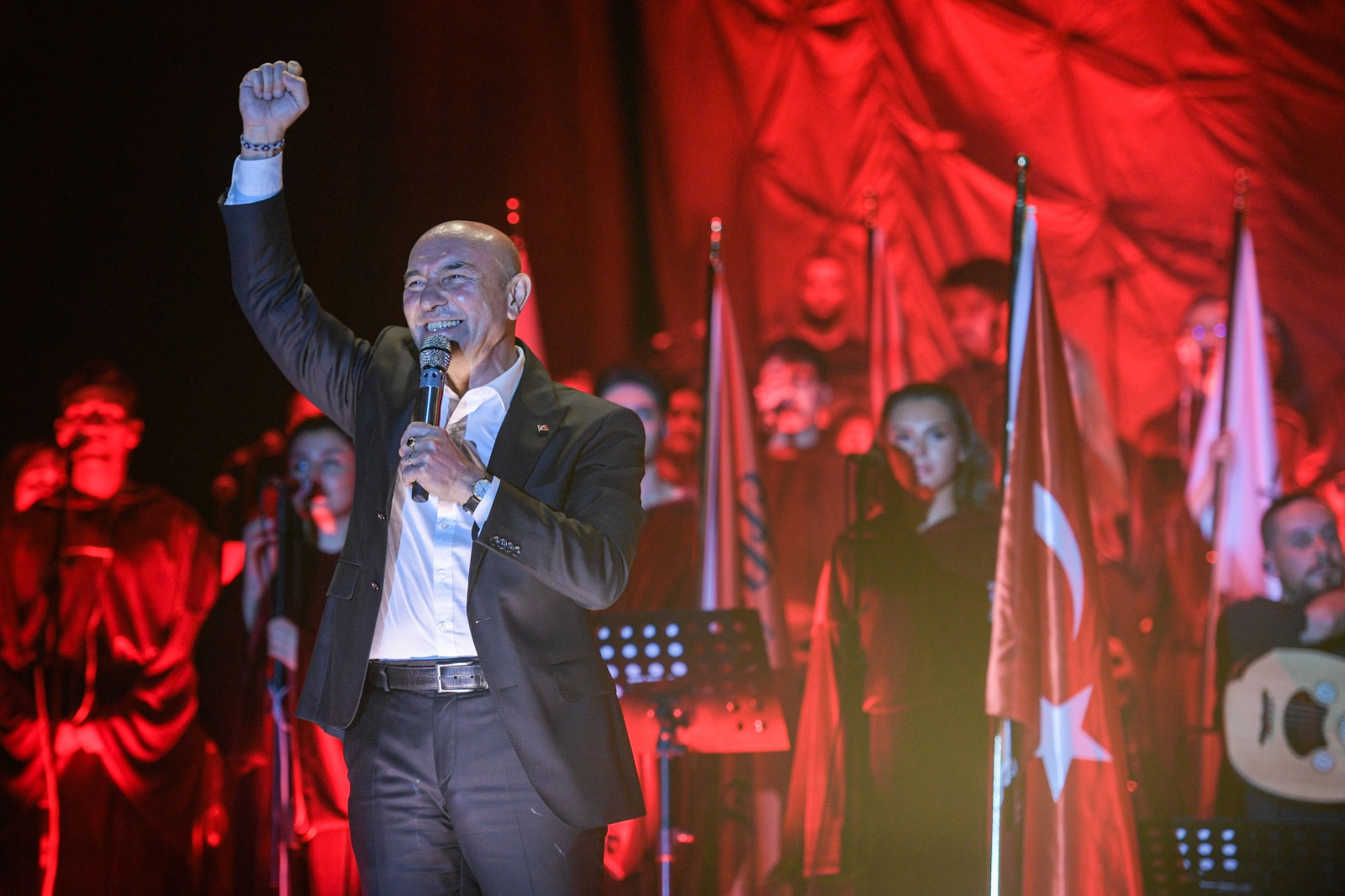 Coşku Kültürpark Çim Alan’da Tan Taşçı konseriyle devam etti. İzmir Marşı ile başlayan gecede İzmirlileri “9 Eylül İzmir’in kurtuluşu, savaşın son günü, barışın ilk günü. 100 yıldır barış içinde yaşıyorsak 9 Eylül’de başladı. İzmir kurtuluşun ve kuruluşun şehri. İzmir cumhuriyetin ve demokrasinin en sağlam bekçisi. İzmir dağlarında çiçekler açan, eğlencesini, neşesini yitirmiş bu coğrafyada antidepresandır, ilaçtır, vitamindir. 9 Eylül ve İzmir bizim namusumuzdur, şerefimizdir. Son nefesimize kadar 9 Eylül’e İzmir’e sahip çıkacağız. Hepinizi çok seviyorum, bu akşam şahane bir akşam” dedi. Başkan Soyer, Tan Taşçı’ya zeytin fidanı hediye etti.