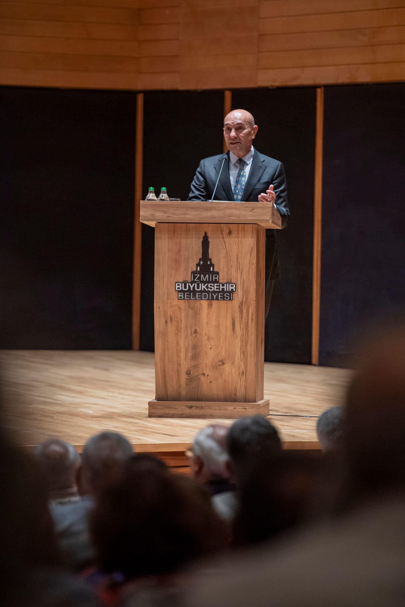 Göreve geldikleri İzmir Büyükşehir Belediyesi bünyesinde iki yeni daire başkanlığı kurduklarını hatırlatan Başkan Soyer, “Toplum Sağlığı Daire Başkanlığı ile İklim Değişikliği ve Deprem Risk Yönetimi Daire Başkanlığı’nı pandemi ve depremden önce kurmuştuk. Pandemi sonrası Türkiye’de örneği olmayan ‘Kriz Belediyeciliği’ni hayata geçirdik. Türkiye’nin en kapsamlı deprem araştırmaları ve risk azaltma projelerini başlattık. İki buçuk yıldır sürdürdüğümüz mikrobölgeleme çalışmaları ile İzmir’in yeraltının röntgenini çekiyor, aktif ve pasif fayların tamamını tespit ediyoruz. İzmir’deki yapı stokunun yüzde 80’inin eski ve yaşlı olduğunu somut biçimde ortaya koyduğumuz İzmir Depremi sonrası İnşaat Mühendisleri Odası ile protokol imzaladık. Bu kapsamda Bayraklı ve Bornova ilçelerimizden başlayarak İzmir’in yapı envanterini çıkarmaya başladık ve İzmirlilerin oturdukları binaların deprem güvenlik karnesini görmelerini sağladık. Kentsel dönüşüm, depreme hazırlık çalışmalarımızın en önemli başlıklarından biri. Biz İzmir’de kentsel dönüşümü “mekânsal adalet” ilkesiyle tanımlıyor ve Türkiye’de örnek bir kentsel dönüşüm modelini yaratmaya çalışıyoruz. Mevzuattaki pek çok eksikliğe, ekonomik krize ve önümüze çıkan türlü zorluklara rağmen İzmir’in altı bölgesinde toplam 248 hektarlık alanda çalışmalarımızı hızla sürdürüyoruz. Türkiye’ye ilham veren Halk Konut Projemiz ile kentsel dönüşüm çalışmalarımıza kooperatif modelini ekleyerek yepyeni bir aşamayı başlattık” ifadelerini kullandı.