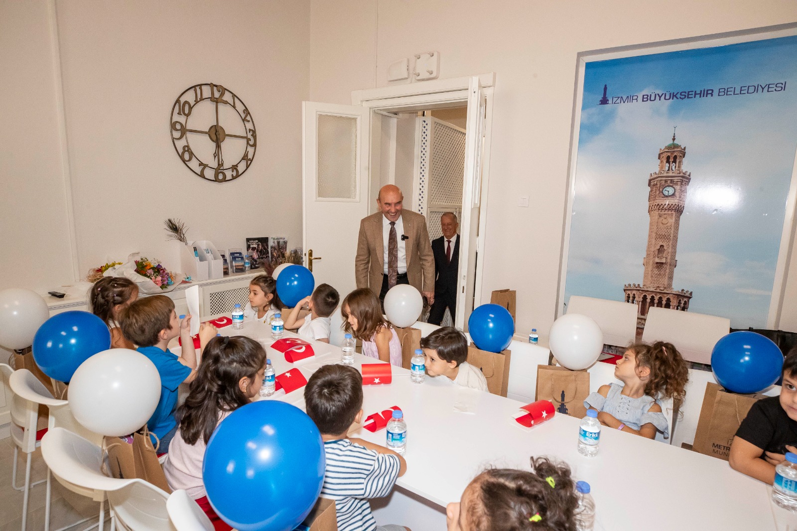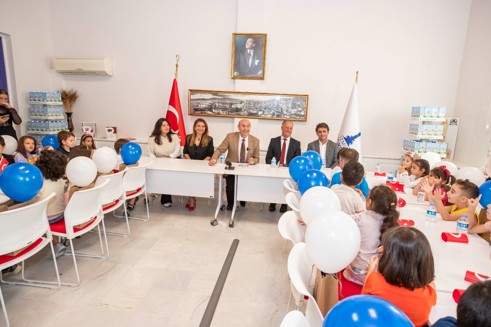 İzmir Büyükşehir Belediye Başkanı Tunç Soyer, 28 Eylül Dünya Süt Günü kapsamında anaokulu öğrencilerini ağırladı. Buca Mega Eğitim Gönüllüleri Anaokulu’nun minikleri, İzmir Büyükşehir Belediyesi’nin yürüttüğü Süt Kuzusu Projesi’ne teşekkür etmek için Başkan Tunç Soyer’i ziyaret etti. 32 öğrencinin katıldığı ziyarette öğrencilere Anaokulu Müdürü Hülya Altun ve öğretmenler eşlik etti.