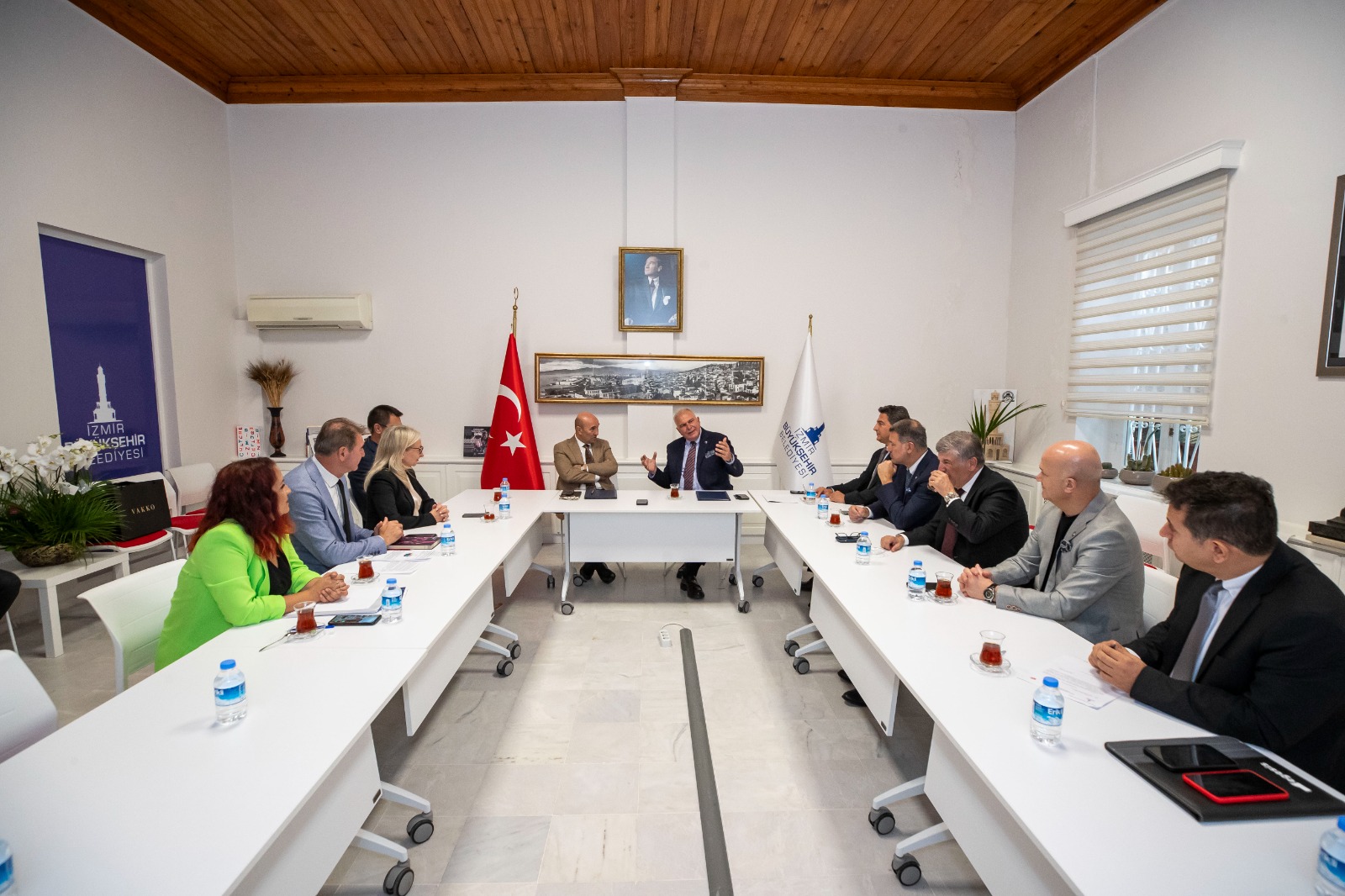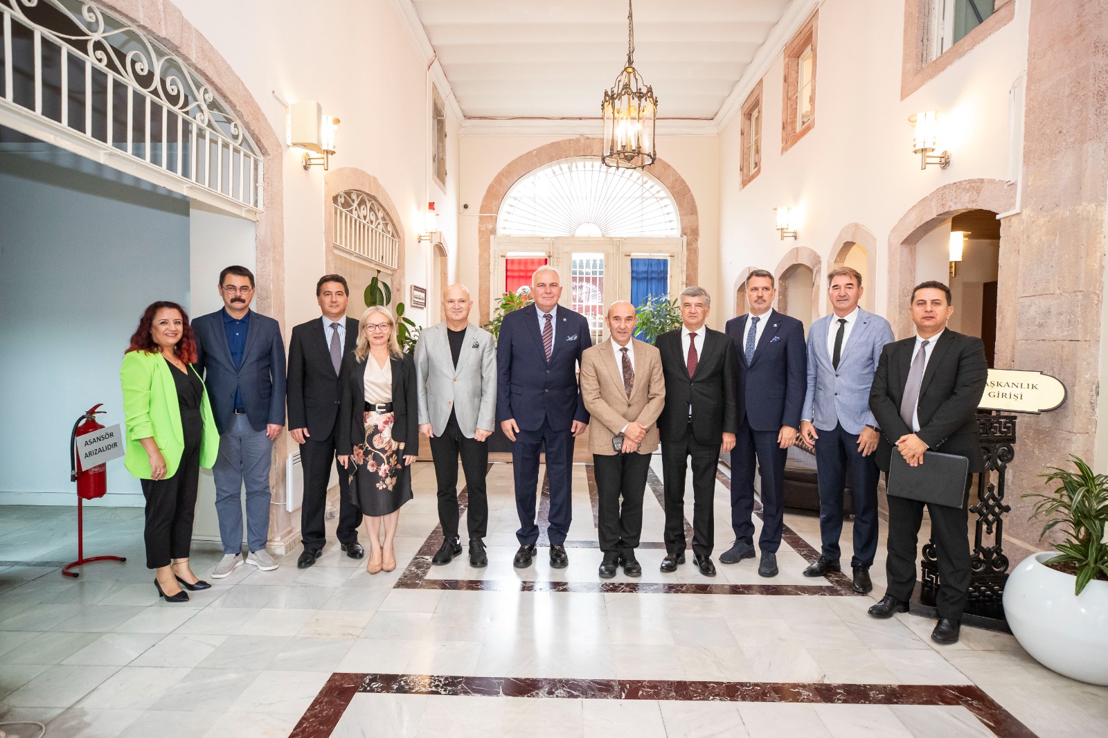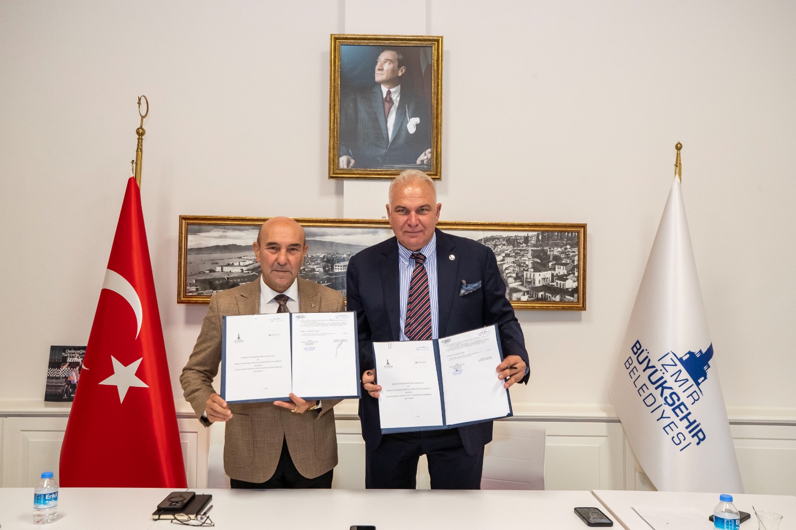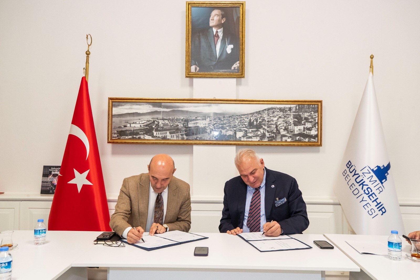 İzmir Büyükşehir Belediye Başkanı Tunç Soyer ev sahipliğindeki protokol imza törenine İzmir Büyükşehir Belediyesi Genel Sekreteri Barış Karcı, Genel Sekreter Yardımcısı Şükran Nurlu, İtfaiye Dairesi Başkanı İsmail Derse, İzmir Atatürk Organize Sanayi Bölgesi (AOSB) Yönetim Kurulu Başkanı Cenk Karace, AOSB Yönetim Kurulu Başkan Vekili Cem İnam, Yönetim Kurulu Üyeleri Melih Dirin, Fesih Demirer, İlker Ergüllü, Bölge Müdür Yardımcısı Güçlü Gezgin, İtfaiye Planlama ve Destek Hizmetleri Şube Müdürü Zeynep Sarıtaş katıldı.